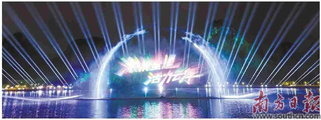 10月30日起,云浮市在蟠龙天湖广场连演三晚山水光影展,以炫彩光影点亮夜空,为十五运会营造热烈氛围。