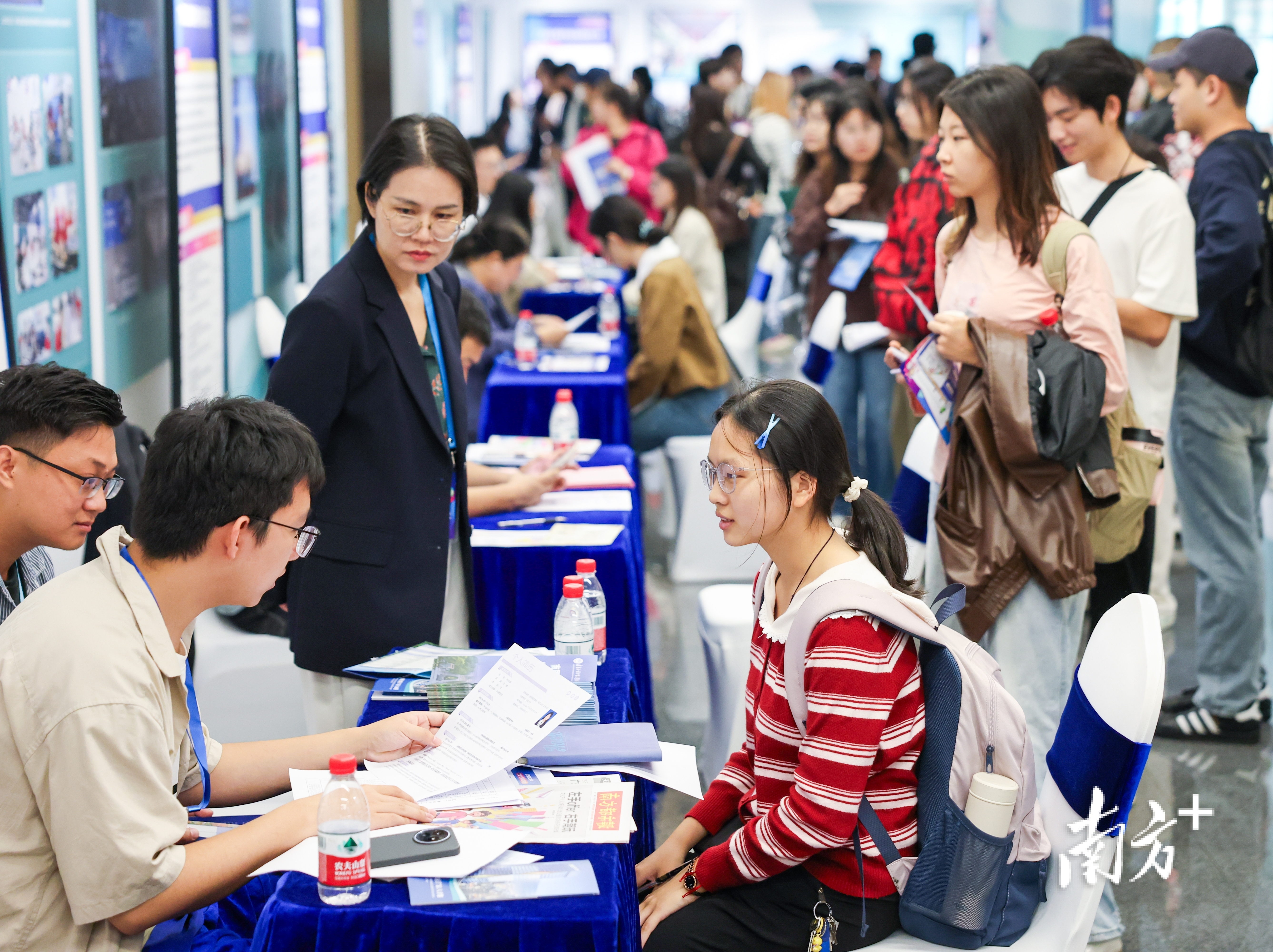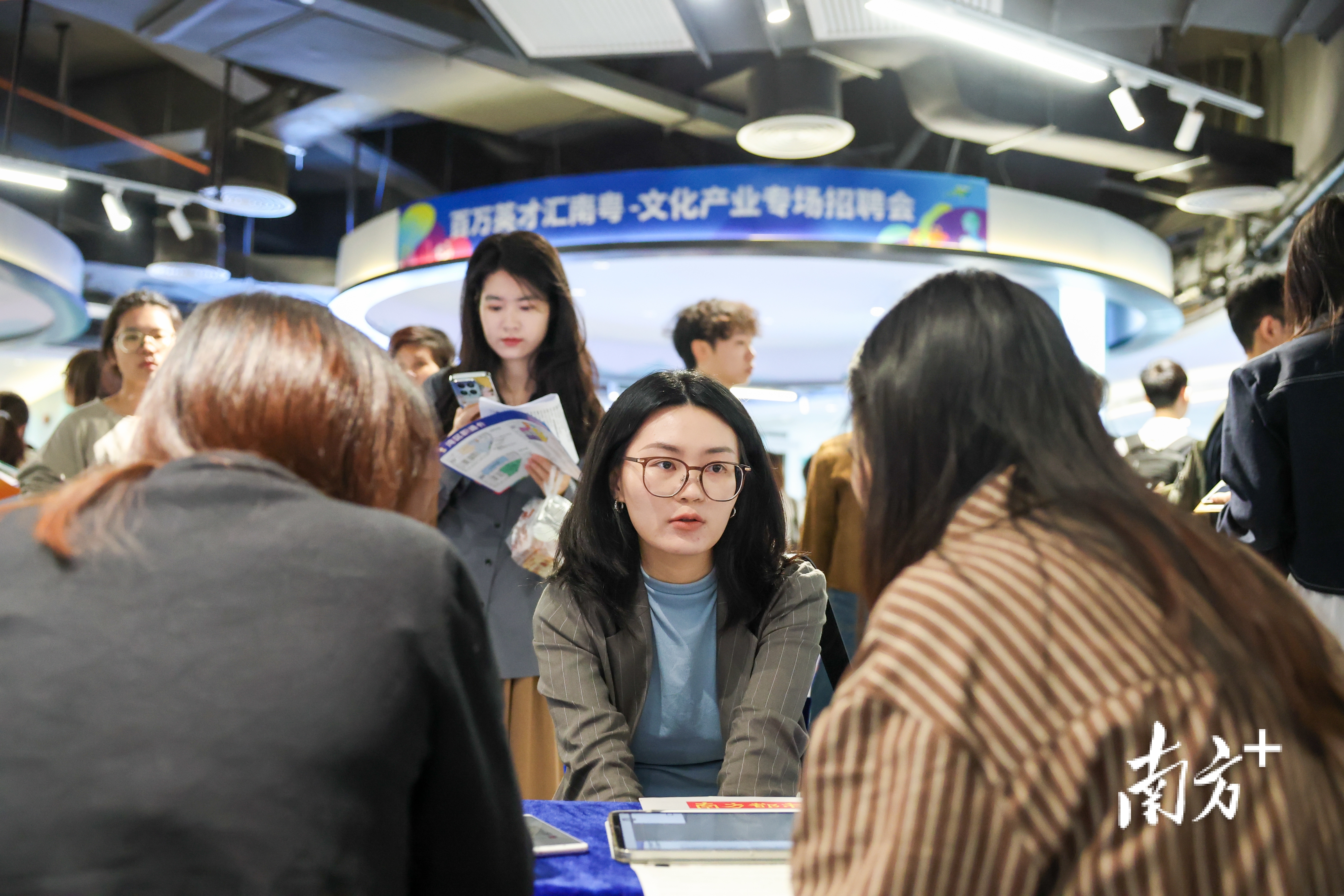 “中国游戏产业要看广州、深圳,希望自己可以留在广东工作。”西安交通大学网络与新媒体专业大四学生谢同学目前在深圳实习,满怀期待地过来求职。她说,这是她首次参与线下招聘,已经与网易、三七互娱等头部企业人力资源负责人进行面对面深入交流。