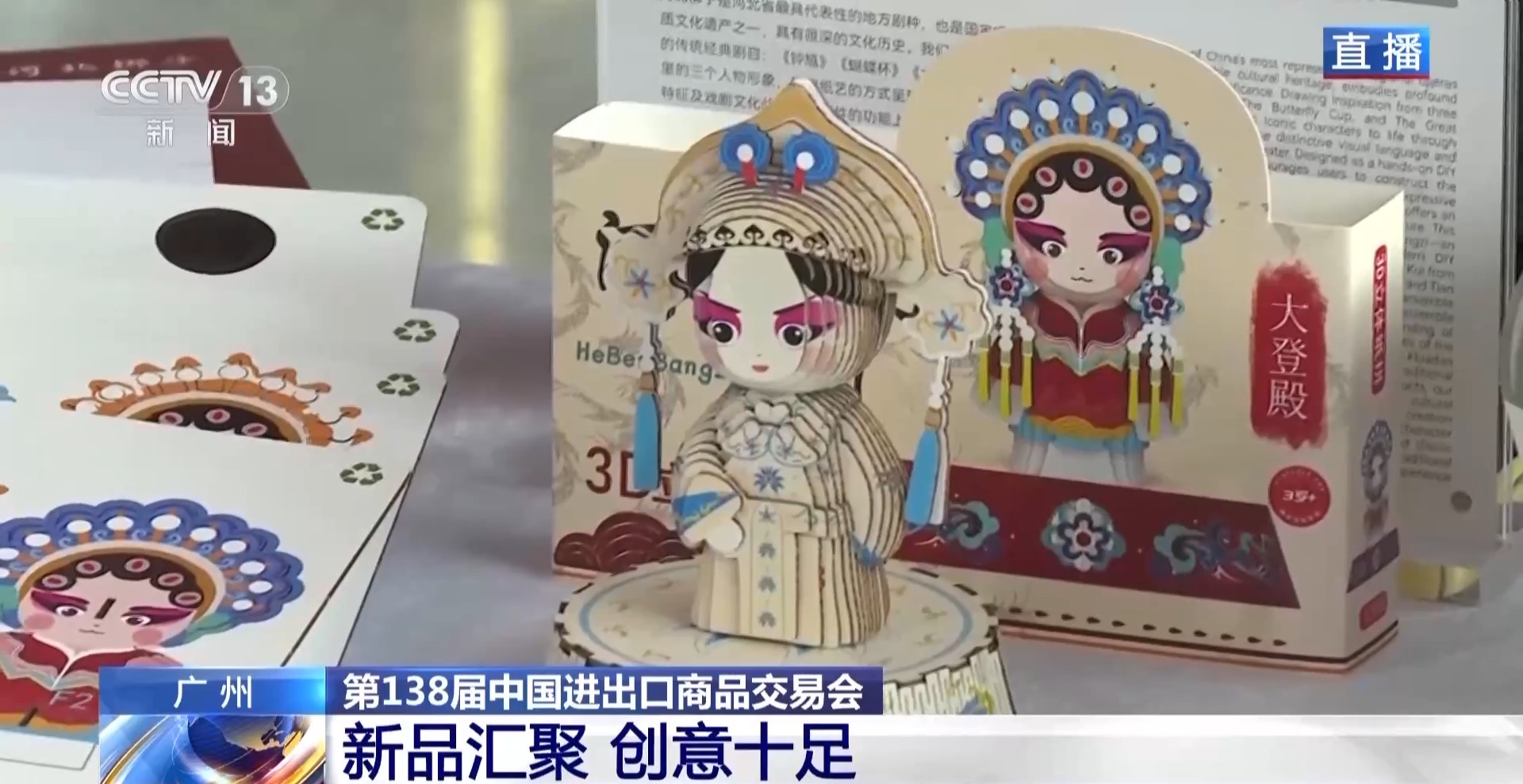 另一款是装饰及礼品展区的《河北梆子》系列3D立体纸插。这款3D立体纸插结合国家级非物质文化遗产河北梆子里的经典戏剧人物做了设计,同时纸插采用可降解材料,体现绿色环保理念,在摆件的功能上增加自由动手拼接的过程,让用户更有体验感。创新设计+传统文化元素的结合也受到了海外客商的关注。