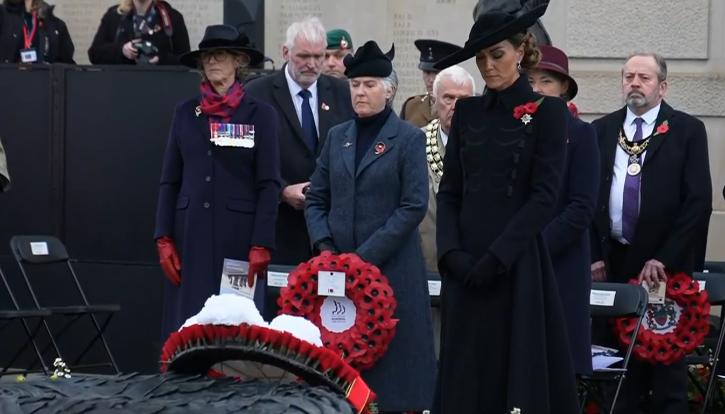 当地时间11日,英国在国家纪念陵园举行仪式,纪念第一次世界大战停战,缅怀一战中阵亡的士兵。英国王室成员出席纪念仪式。(总台记者 杨兢兢)