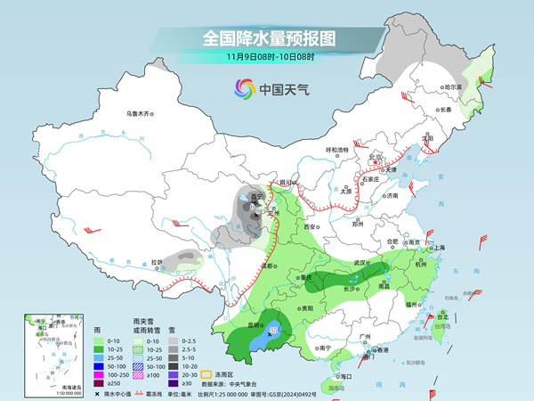 明天,新疆北疆地区和伊犁河谷、西藏东部、西北地区中部、川西高原北部等地部分地区有小到中雪或雨夹雪。西南地区东部和南部、湖南中部和西部、华南沿海地区、海南岛中部和南部、台湾岛等地的部分地区有小到中雨,其中,台湾岛部分地区有大到暴雨,局地大暴雨或特大暴雨。