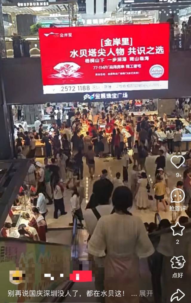 广东深圳水贝某黄金展厅客服经理 邓柳美:我们商场在国庆期间,人流量达到日均3万人次,同比增长10%左右,环比上个月基本上翻2到3倍。