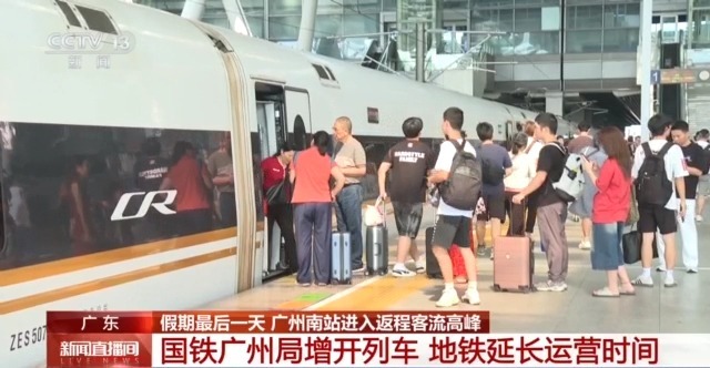 国庆中秋假期,1日到7日,广东广州南站累计到发旅客520.9万人次,日均到发约74.4万人次。今天是假期最后一天,广州南站的客流情况如何?