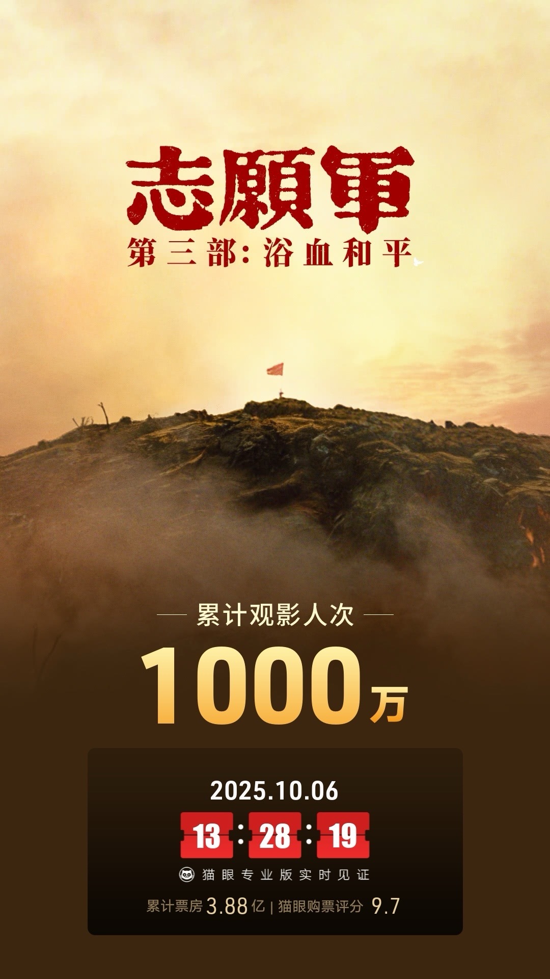 其中《志愿军:浴血和平》单片票房突破3.7亿元,持续领跑国庆档票房,观众基本盘稳固,其良好的市场表现也为整体票房走势的平稳提供了重要支撑。观众画像显示,该片男女观众分布均衡,40岁以上多人结伴观影的比例尤为突出,成为多数家庭观众的观影首选。
