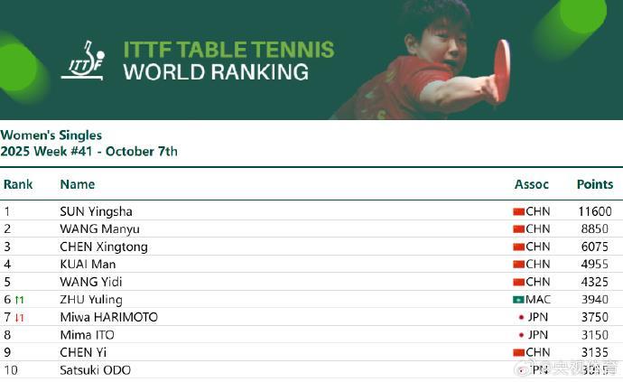 10月4日,在女双决赛中,中国组合蒯曼/王曼昱3-1逆转击败日韩跨协会组合早田希娜/朱芊曦,夺得女双冠军。