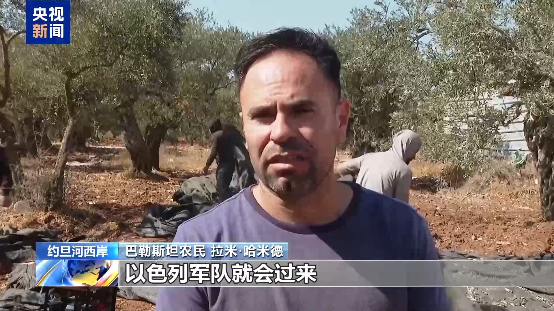 巴勒斯坦农民 拉米·哈米德:我们在这个地区有很多橄榄树,在郊区也有。每次我们去收橄榄,以色列军队就会过来开始向人们开枪、扔手榴弹。犹太定居者也带着以军来袭击我们,情况非常艰难,而且绝对没有任何安全可言。