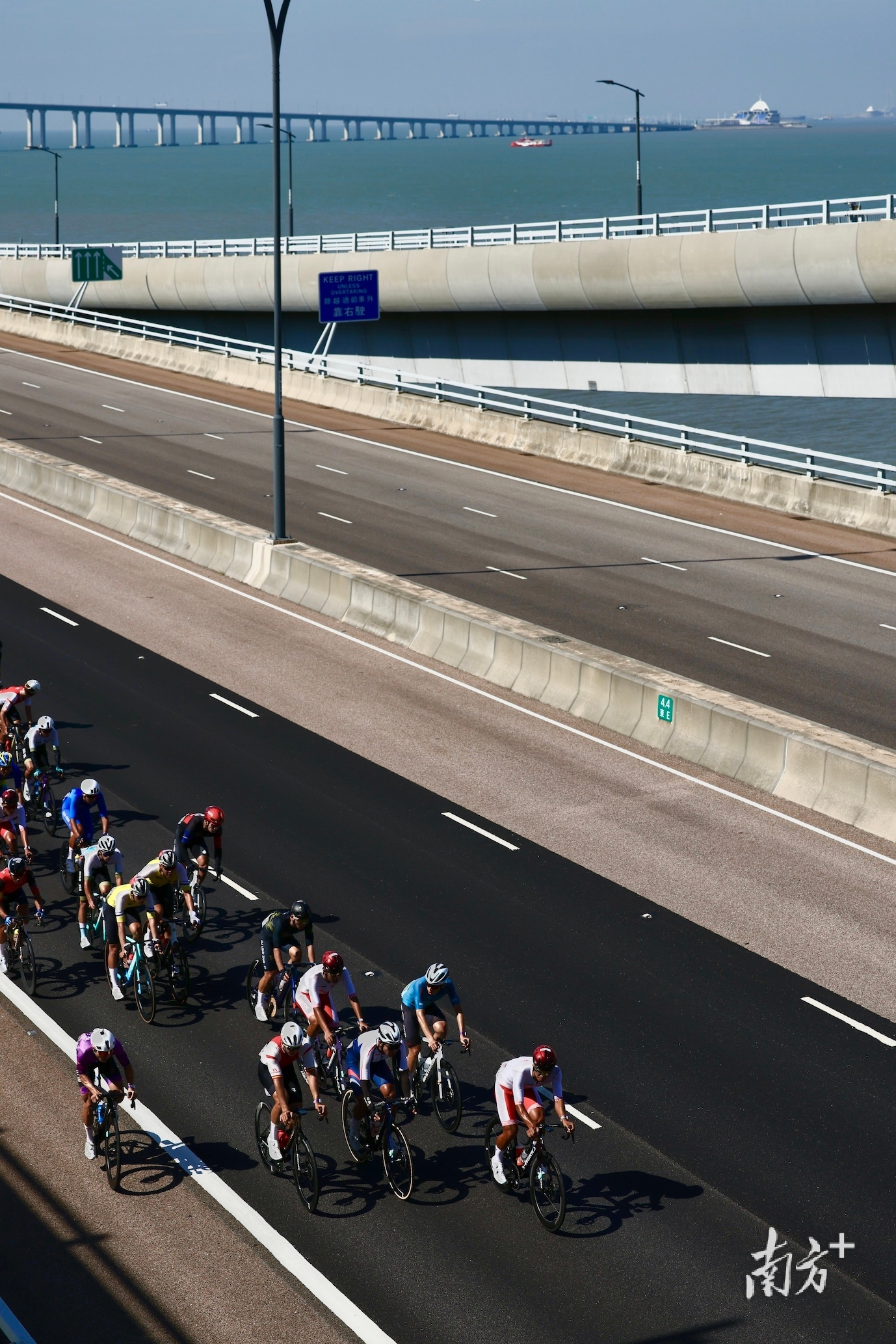 11月8日,第十五届全国运动会自行车公路赛男子个人赛正式开赛,这是本届赛事中唯一跨越粤港澳三地的标志性跨境赛事,也是全运会历史上首次跨境赛事。珠海赛区执委会副秘书长、竞赛部部长、自行车(公路)竞委会副主任闵云童在接受采访时说:“今天天气情况良好,风和日丽,我们可以通过航拍等技术手段把整个大湾区的风貌展现得非常好。”