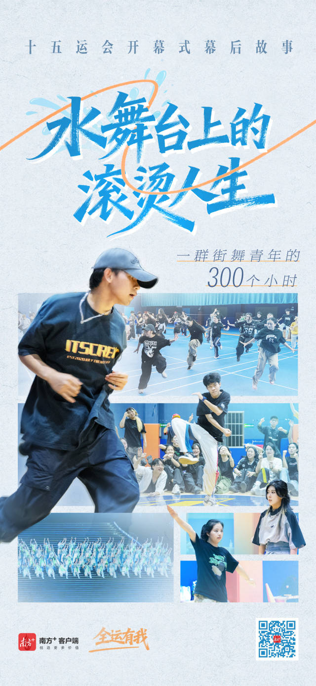 南方日报、南方+跟踪记录了其中一群街舞青年的“全运之旅”。从第一次集训到最后走上舞台,每个人的训练时长都超过了300小时。