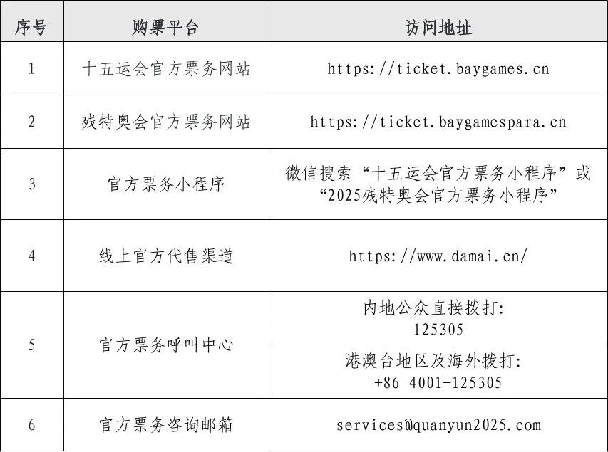 二、为确保您的合法权益,请务必通过十五运会和残特奥会官方渠道购买门票,切勿轻信非官方平台发布的票务信息,避免面临无法入场、财产受损等风险。