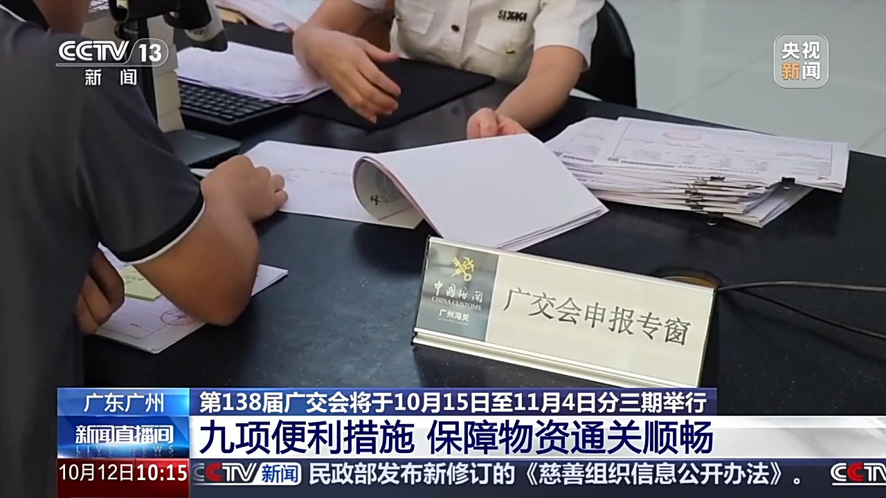 第138届中国进出口商品交易会,将于10月15日至11月4日分三期在广东广州举行。11日,广州海关发布9项便利措施,确保参会的出境人员和物资通关顺畅。