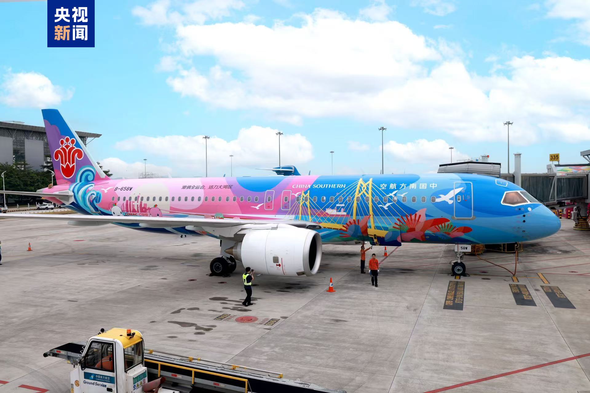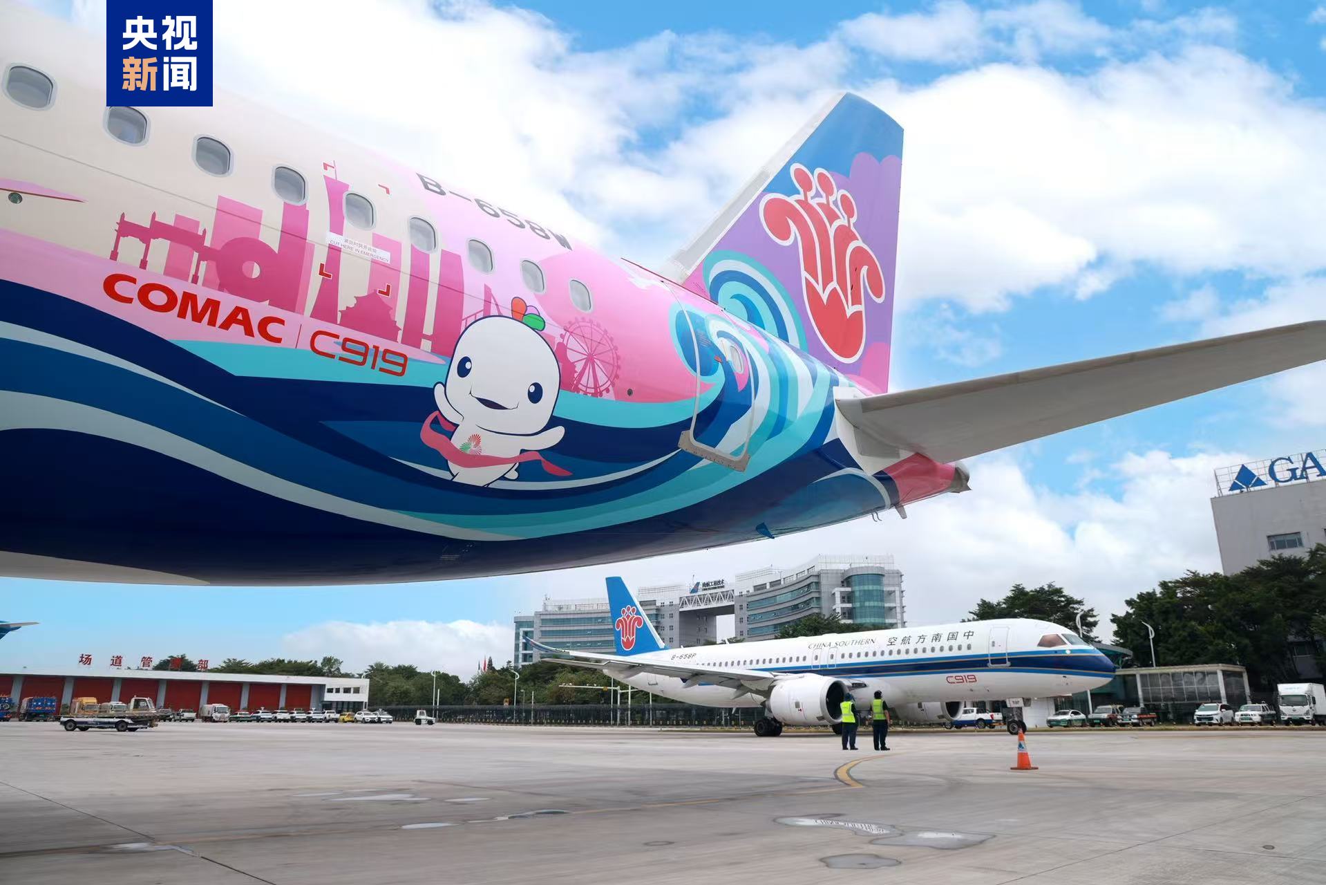 11月4日12时27分左右,国内首架C919十五运会彩绘飞机“大美湾区”号搭载157名旅客从广州白云国际机场顺利起飞,前往上海虹桥国际机场。十五运会期间,这架具有特殊意义的国产大飞机主要执飞广州往返上海虹桥航线,服务十五运会参赛、观赛群众及往来旅客。