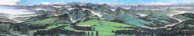 “一画”尽览天地大美。《大美天山》的创作始于今年7月在新疆乌鲁木齐启动的文化润疆行“天山长卷”主题采风创作活动。作品由广州美术学院师生组成主创团队,联合粤新两地多位艺术家共同执笔,历经10余次易稿,耗时3个多月,最终在新疆维吾尔自治区成立70周年庆祝大会举行之际钤印收官。画面熔天山博格达峰、兰新高铁、果子沟大桥、原始云杉林等标志性景象于一炉,并生动捕捉牧民驰骋与游客露营的祥和生机,共同构成一幅壮美与发展并存、传统与现代共荣的新时代新疆图景,彰显民族团结、生态和谐、生活幸福的崭新气象。这幅集体创作的最新成果,不仅是粤新两地文化交流交融的生动见证,也体现了新时代广东的艺术家们坚持深入生活,广纳艺术资源,在交流融合中不断开拓创新的艺术追求。