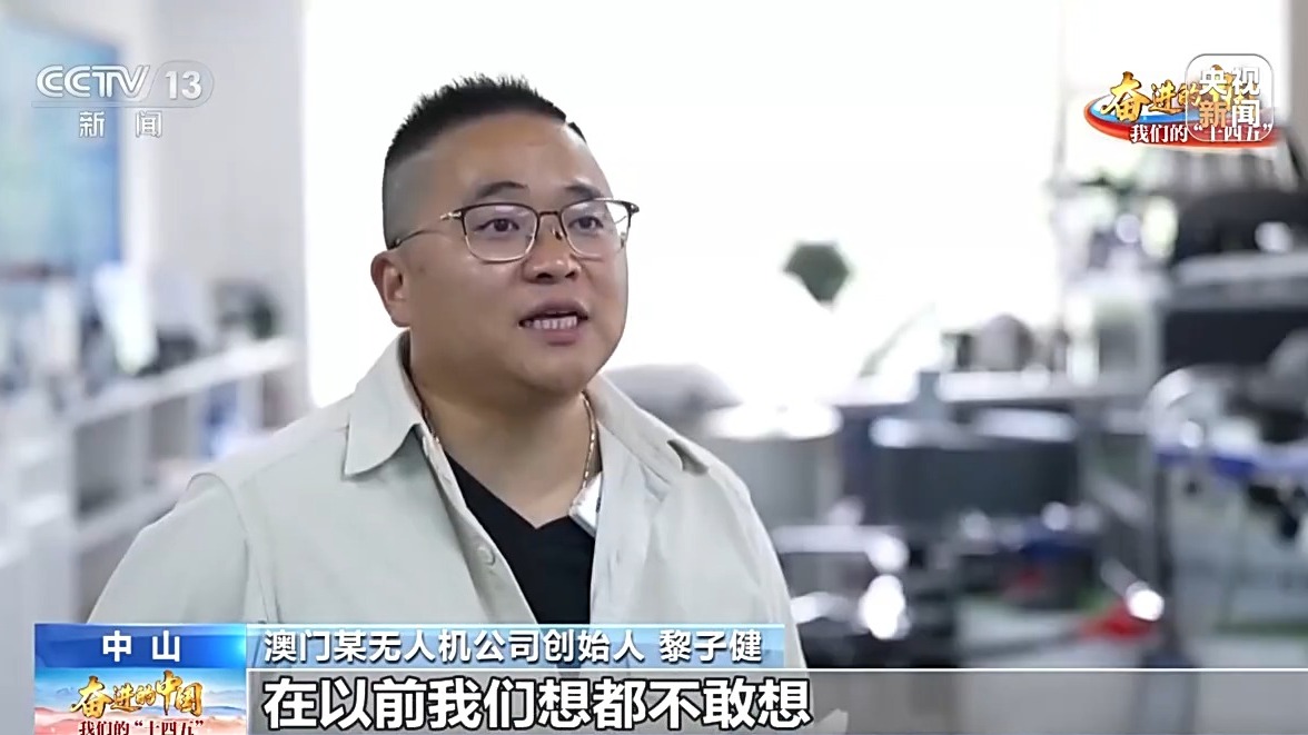 澳门某无人机公司创始人 黎子健:一天跑完深中珠澳,在以前我们想都不敢想。看着深圳的研发想法在中山变成产品,在珠海找到合作的伙伴,深中通道让我的梦想真正飞驰起来。