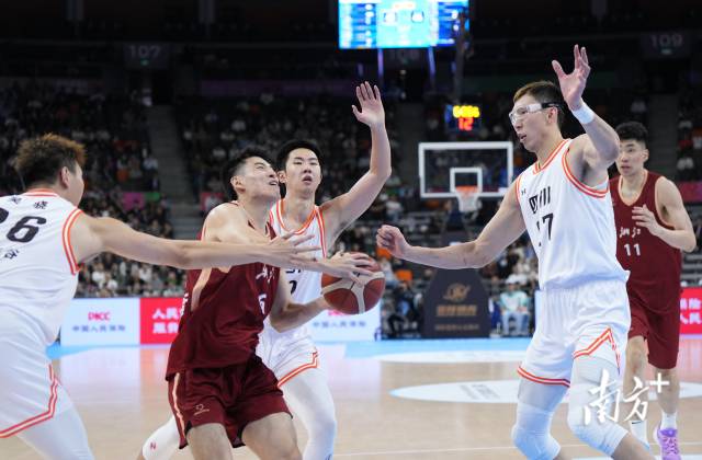 易边再战,四川队果断加强内线攻势,替补登场的周琦与胡金秋联手发力,开局打出7-0的攻击波重新夺回领先。面对对手内线压制,浙江队刘泽一命中关键三分稳住局势,程帅澎随后连得5分紧咬比分。第三节战罢,体能消耗巨大的双方仍难分高下,四川队仅以56-55的1分优势进入末节决战。