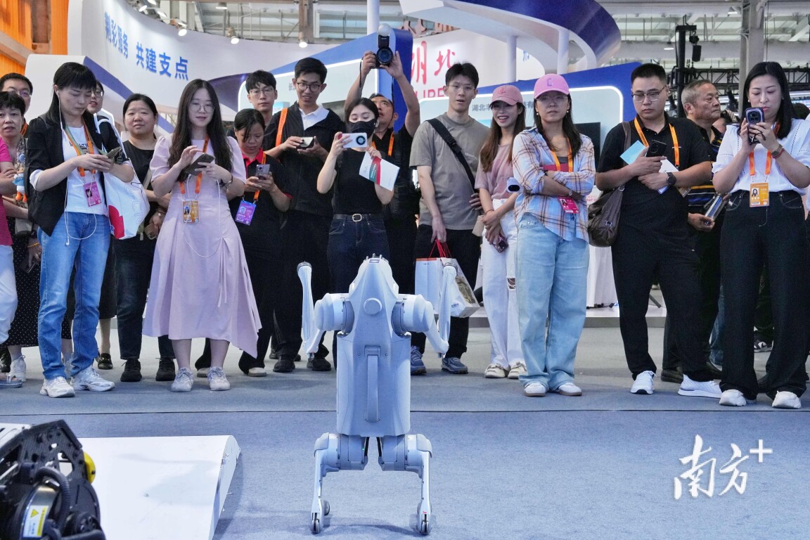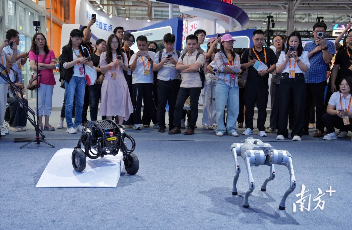 外形酷炫吸睛的机器狗、速度与越障性能兼具的轮足式机器人、充满想象力的3D游戏、传承中国美学的国潮动漫……9月10日,2025年中国国际服务贸易交易会(下称“服贸会”)在北京开幕,广东交易团以“数智广东 创新未来”为主题,亮出多款“广东精品”,以产品展现服务。