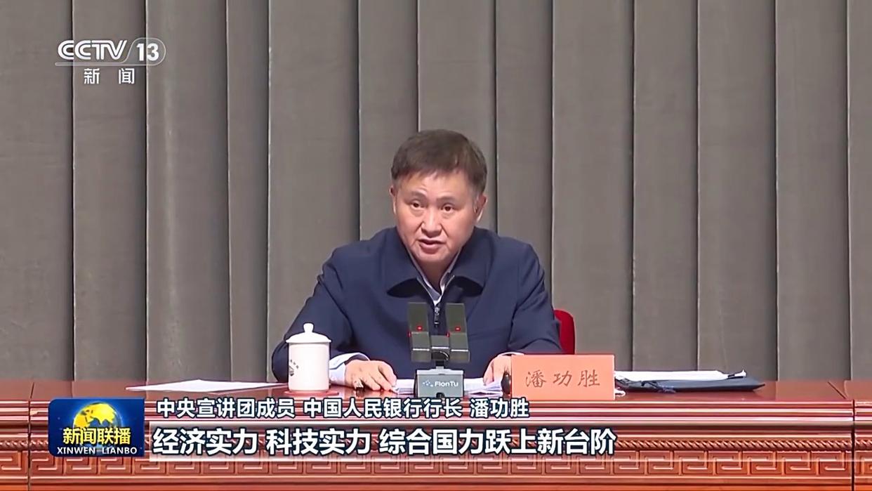 中央宣讲团成员 中国人民银行行长 潘功胜:过去5年,我国有效应对一系列重大的风险挑战,经济实力、科技实力、综合国力跃上新台阶,中国式现代化迈出新的坚实的步伐,第二个百年奋斗目标新征程实现良好开局,这些重大成就的取得,根本在于以习近平同志为核心的党中央的领航掌舵,在于习近平新时代中国特色社会主义思想的科学指引。