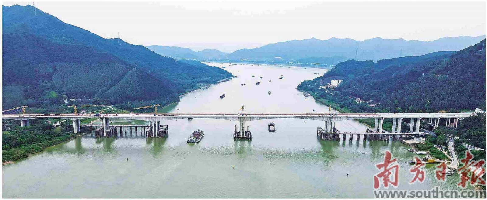 日前,肇明高速公路杨梅西江特大桥实现双幅贯通,顺利联通西江南北两岸,为实现通车目标奠定基础。