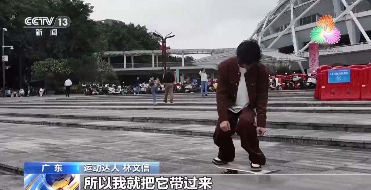 无论走到哪个赛场,林文信总会带上他的滑板。他说,滑板不仅是全运会的正式项目,更是他连接观众与赛事的“桥梁”。