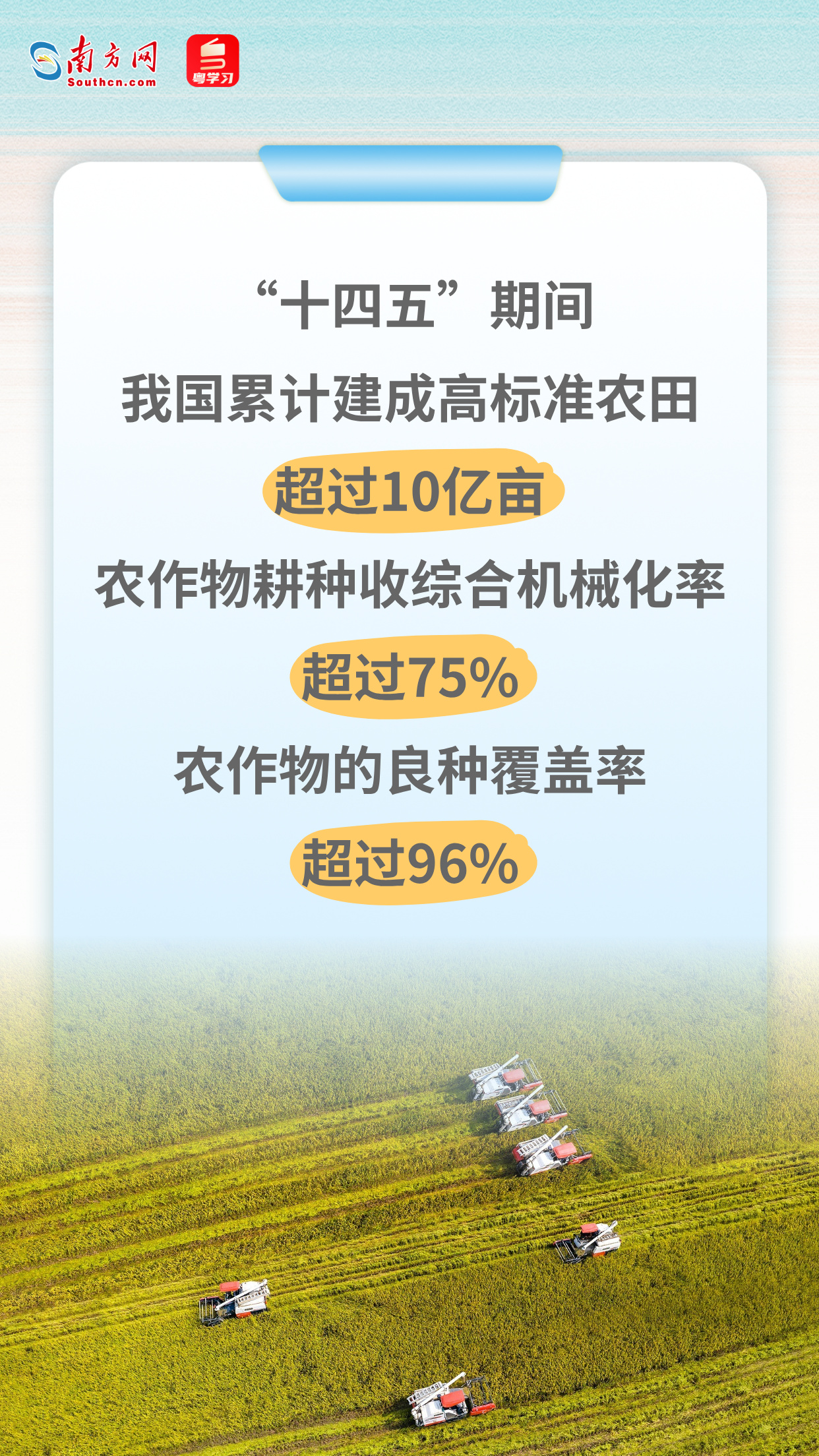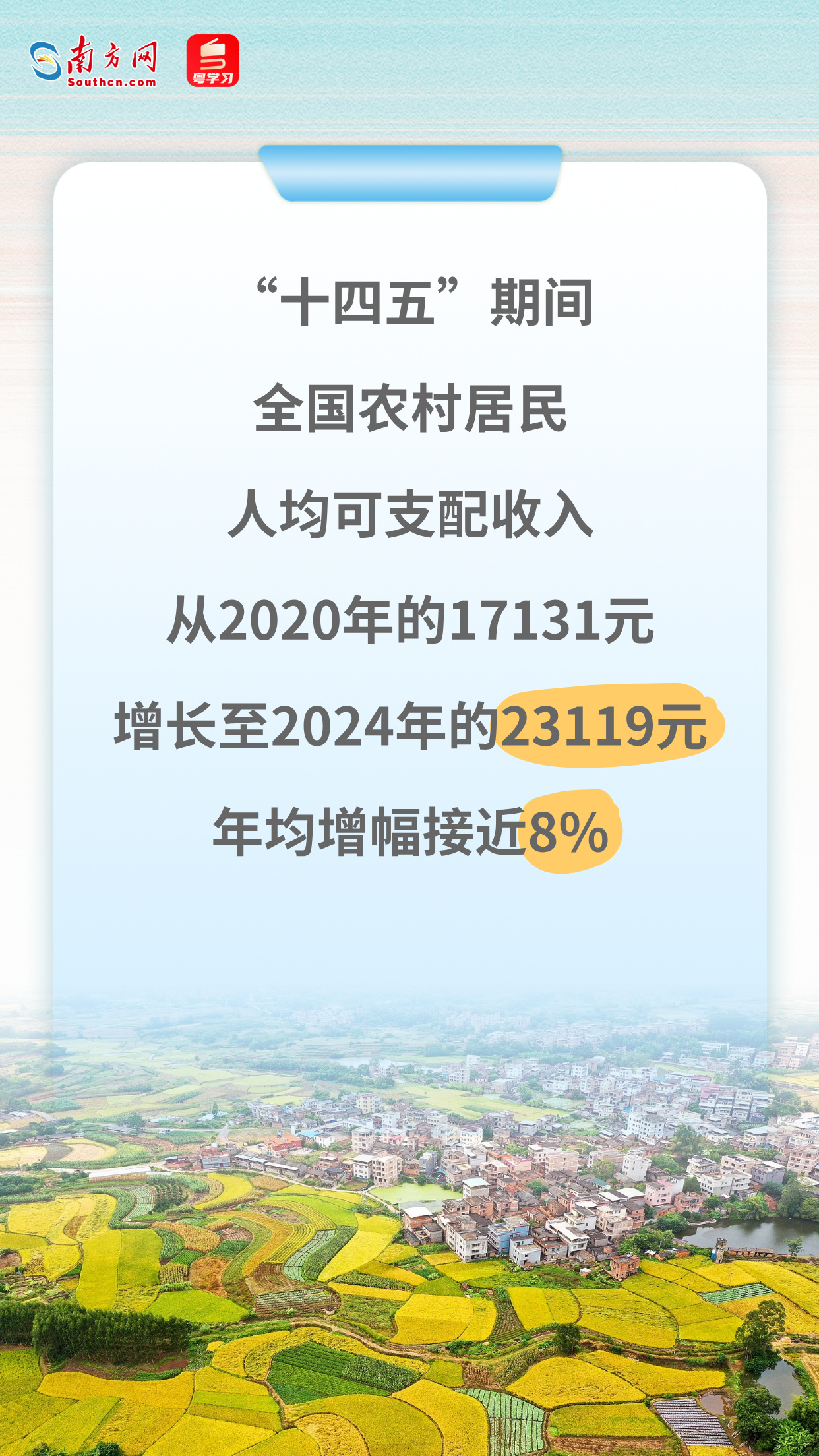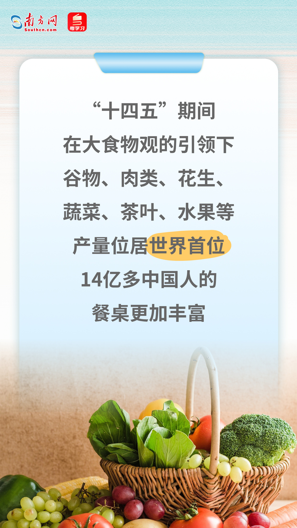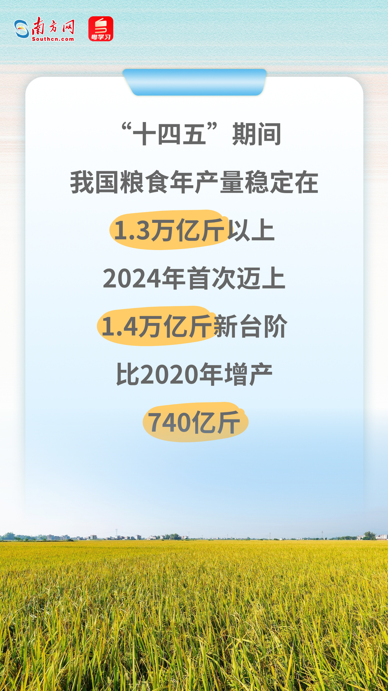 悠悠万事,吃饭为大。“十四五”收官之际,中国农业交出亮眼的成绩单。从粮食年产量首次迈上1.4万亿斤新台阶,到持续增长的农村居民人均可支配收入,一组组鲜活的数据表明,我国粮食库存充裕、市场平稳,中国人的饭碗端得更牢、更有成色!