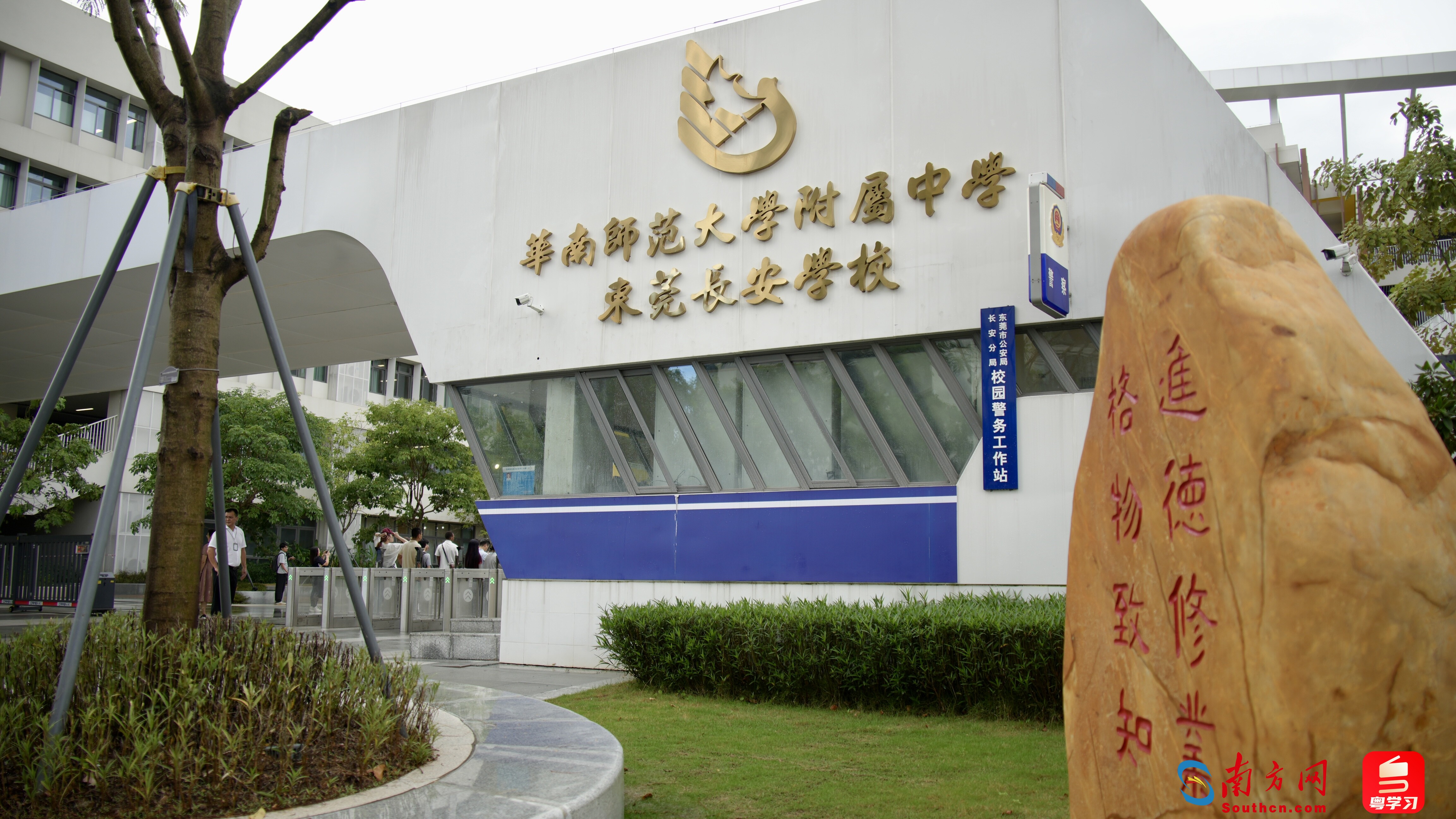 错落有致的现代化教学楼、此起彼伏的孩童欢笑声……走进华南师范大学附属中学东莞长安学校(以下简称“华附长安学校”),一片书香弥漫、活力盎然的景象徐徐展开。校长尹军成化身“导游”,热情洋溢地讲解着学校的设计巧思:“大家站在高处以俯瞰的视角看,整个校园布局是一个‘长’字,寓意长安镇人民对‘长久安乐’的文化追求。”