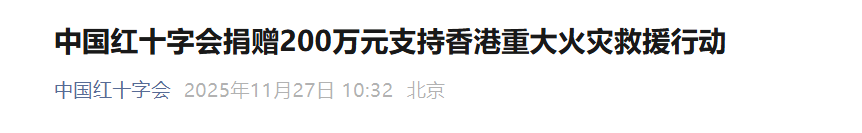 中国红十字会捐赠200万元支持香港重大火灾救援行动