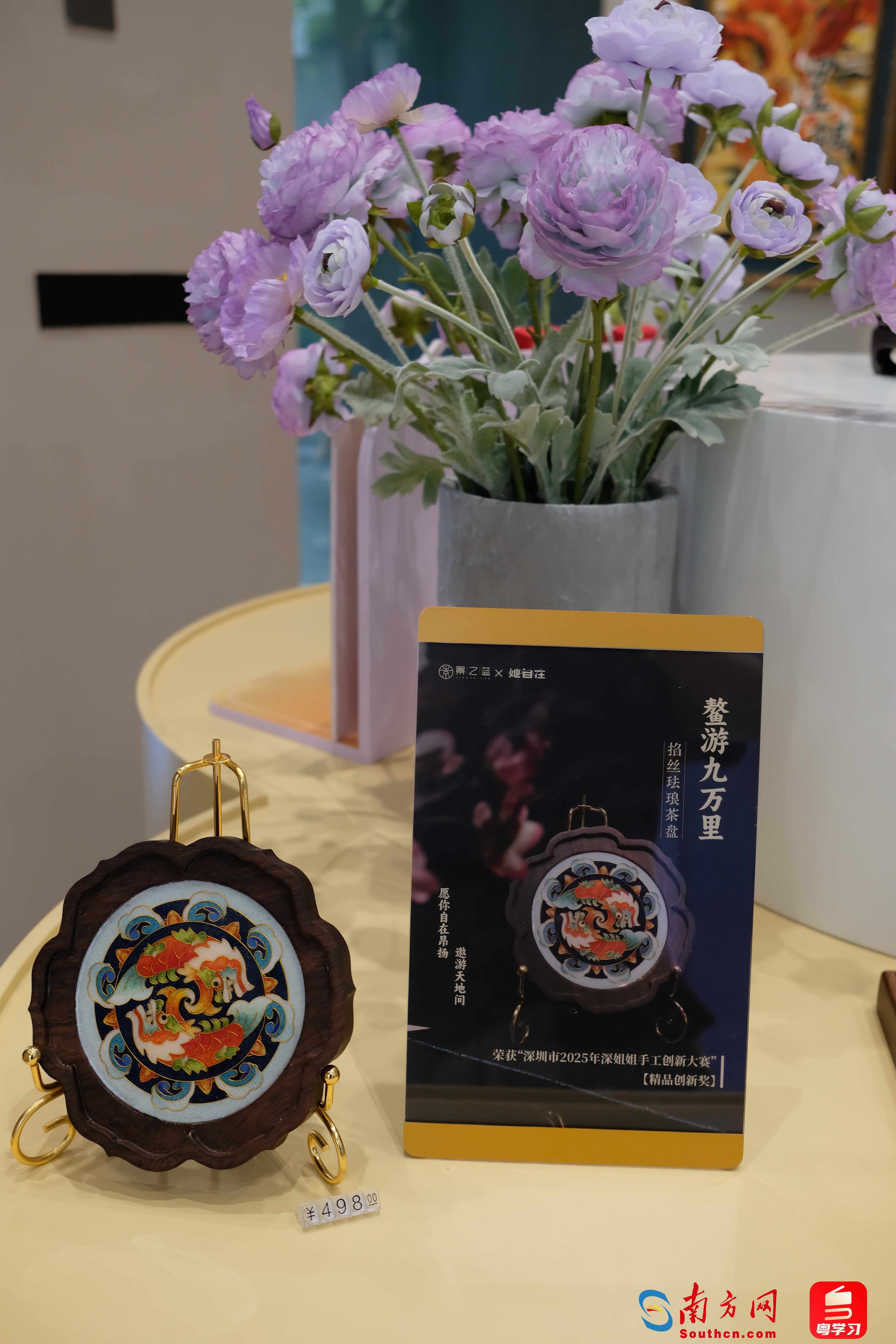 2024年7月,“她自在”与文创品牌“景之蓝”合作发起非遗手艺人培育计划,23位社区女性参与学习。她们共同创作出《鳌游九万里》茶盘,图案取自南头古城岭南灰塑的代表图样“鳌鱼”。这一古代神话中“浮天载地”的灵物,寓意向上遨游与吉祥好运。