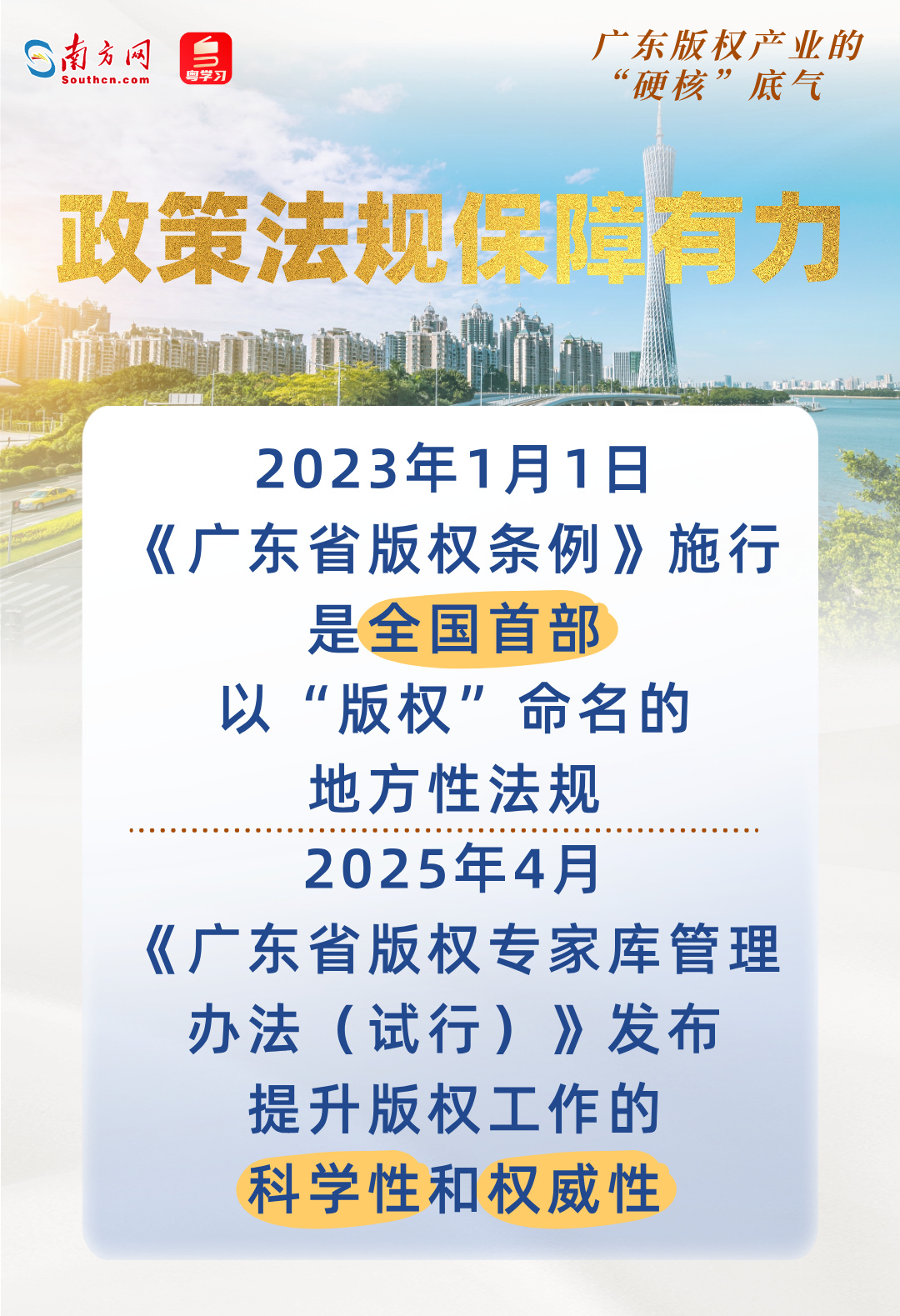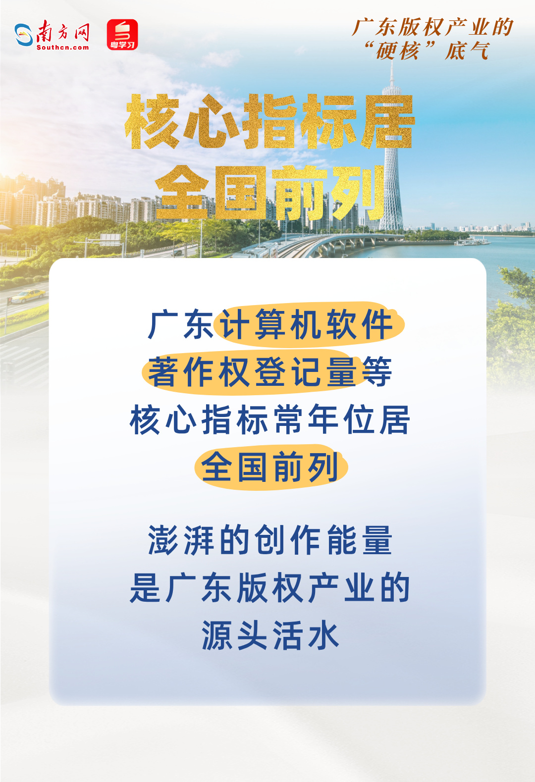 广东,不仅是经济大省,更是版权大省,有着“硬核”底气。作为版权大省,广东已探索出一条“版权赋能产业、产业反哺版权”的可持续发展路径,打造出版权助力高质量发展的“广东样本”。