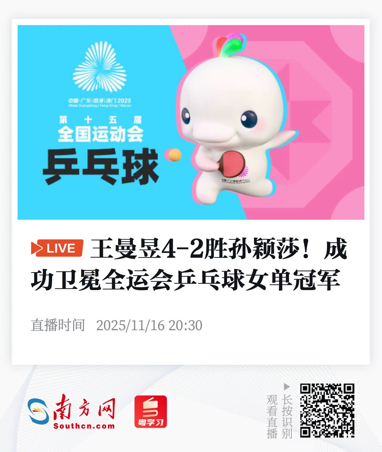 11月16日晚,在澳门进行的第十五届全运会乒乓球项目成年组女单决赛中,黑龙江队选手王曼昱以4-2战胜河北队选手孙颖莎,成功卫冕全运会女单冠军!孙颖莎连续两届全运会均遗憾摘银。