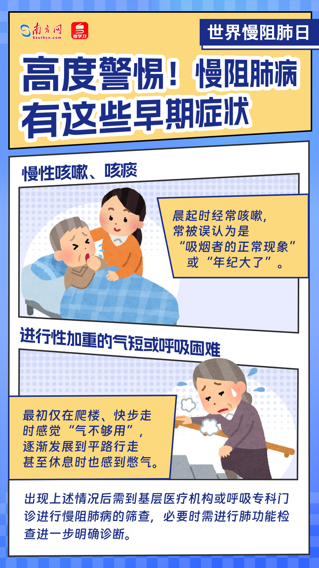 国家卫生健康委数据显示,我国40岁及以上居民慢性阻塞性肺疾病患病率高达13.6%,但其患病知晓率仅为0.9%。11月19日是世界慢阻肺日,慢性阻塞性肺疾病的早期有哪些症状?如何及早发现及预防?一起来了解!