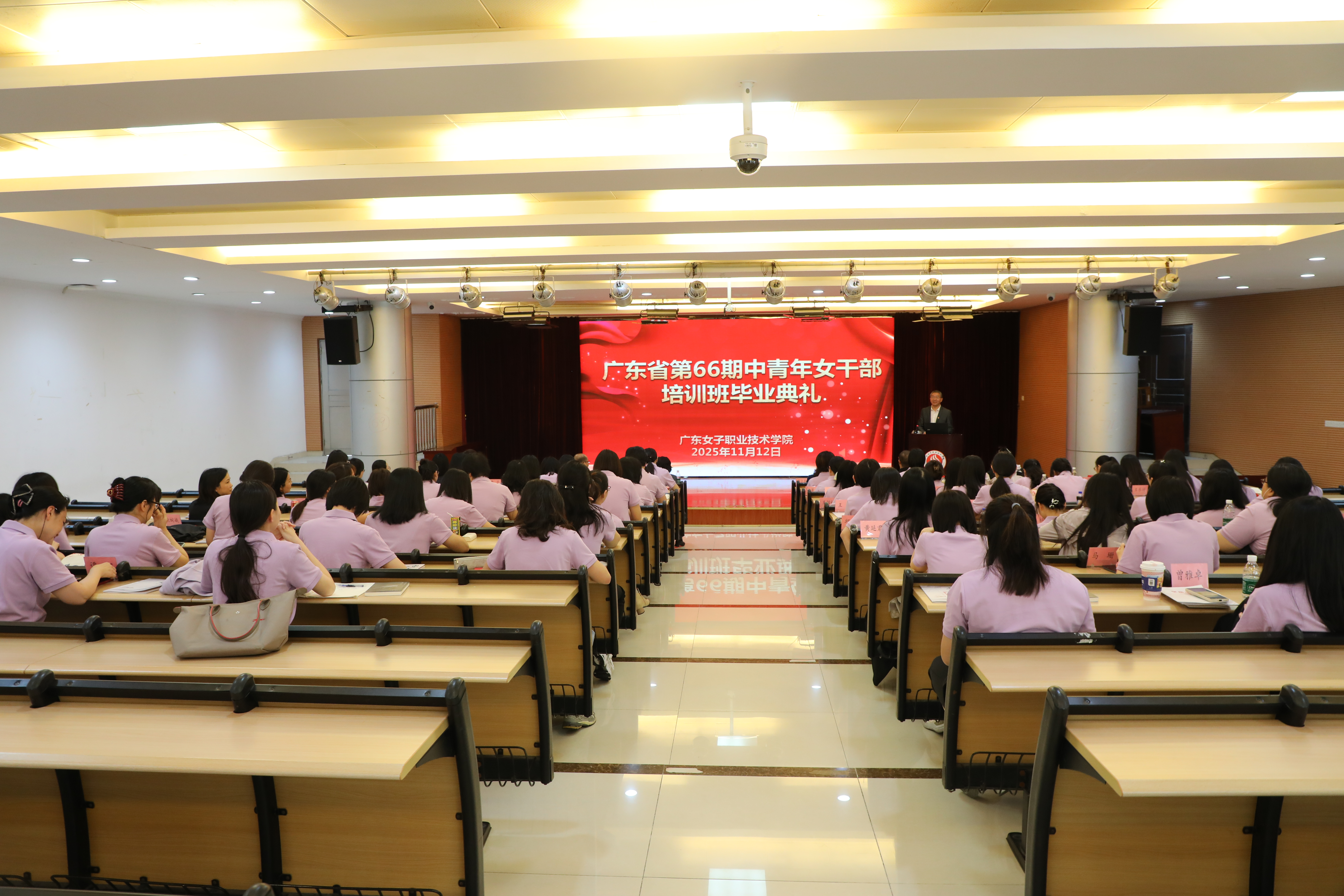 11月12日上午,由中共广东省委组织部、中共广东省委党校、广东省妇联联合主办,广东女子职业技术学院承办的广东省第66期中青年女干部培训班举行毕业典礼。广东女子职业技术学院党委书记车小真,广东省妇女联合会组织联络部部长郑东华,广东省委党校教务处副处长勾孟,广东女子职业技术学院继续教育学院、马克思主义学院等相关部门负责人,以及培训班全体70名学员参加。典礼由马克思主义学院程凯院长主持。