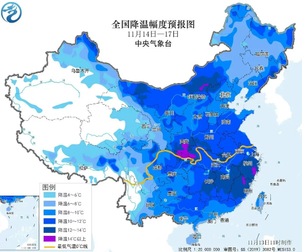 据中央气象台消息,预计11月14日至17日,我国将迎来今年下半年首场寒潮天气过程,此次寒潮过程具有影响范围广、降温幅度大、大风天气显著、降水整体不强等特点。