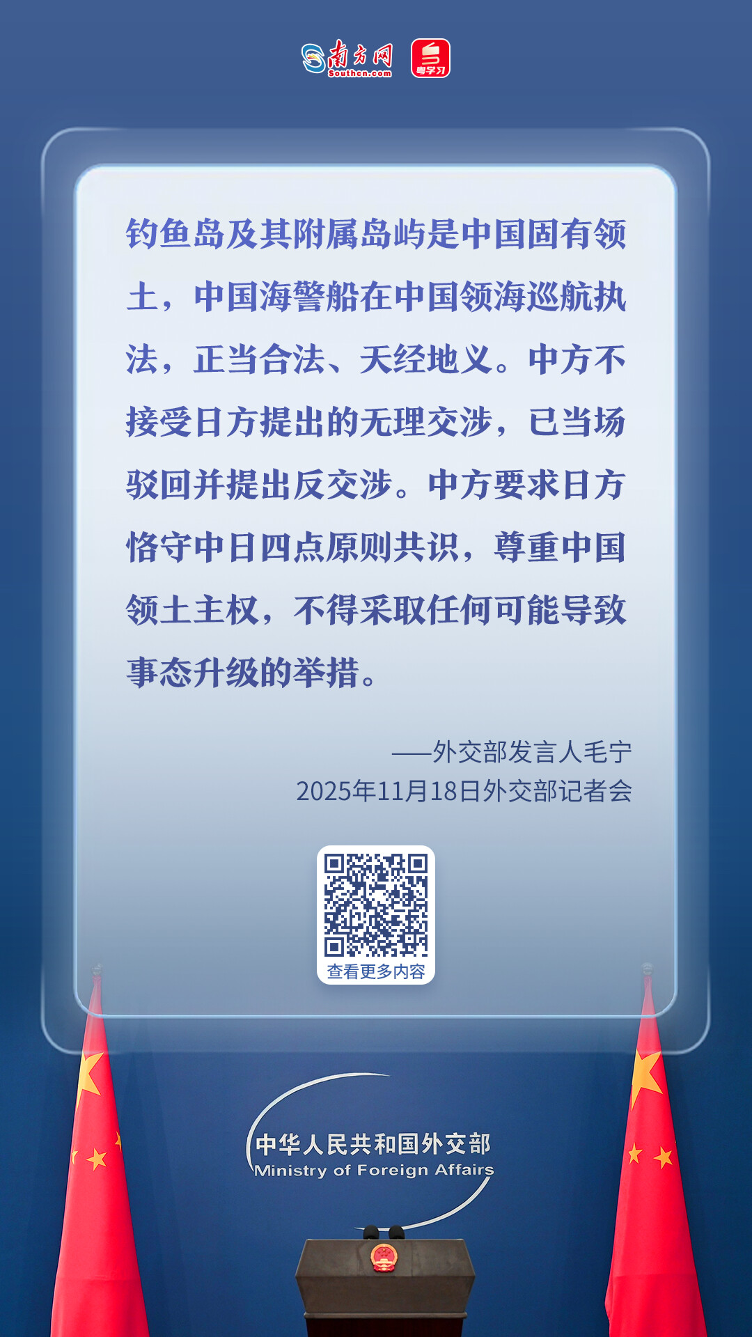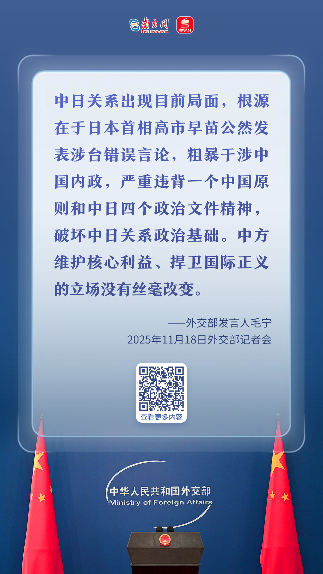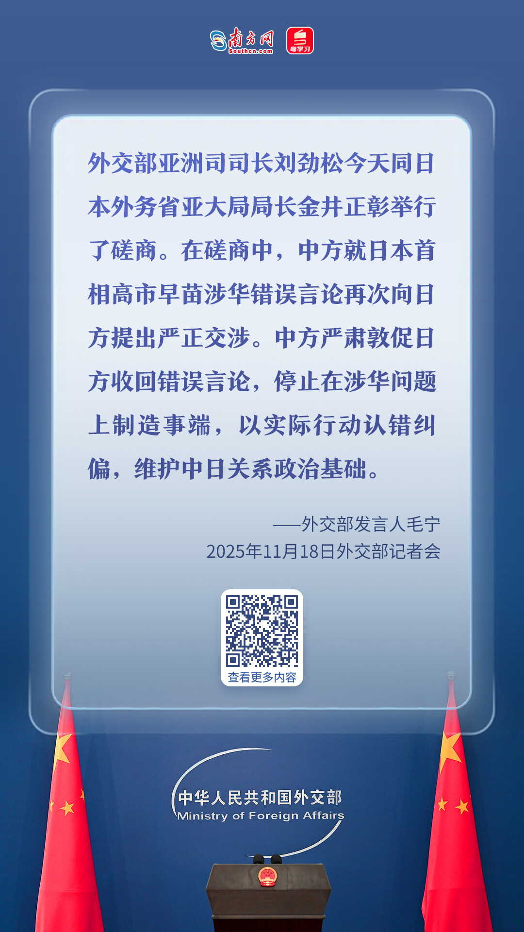 11月18日,外交部发言人毛宁主持例行记者会,就日本首相高市早苗涉台错误言论、中日外交官员举行磋商、日方“抗议”中国船只进入钓鱼岛周边海域、叙利亚有意向中方移交相关恐怖分子一事等问题回答记者提问(查看实录>>>)。一组图片带你速览今日外交部记者会要点。