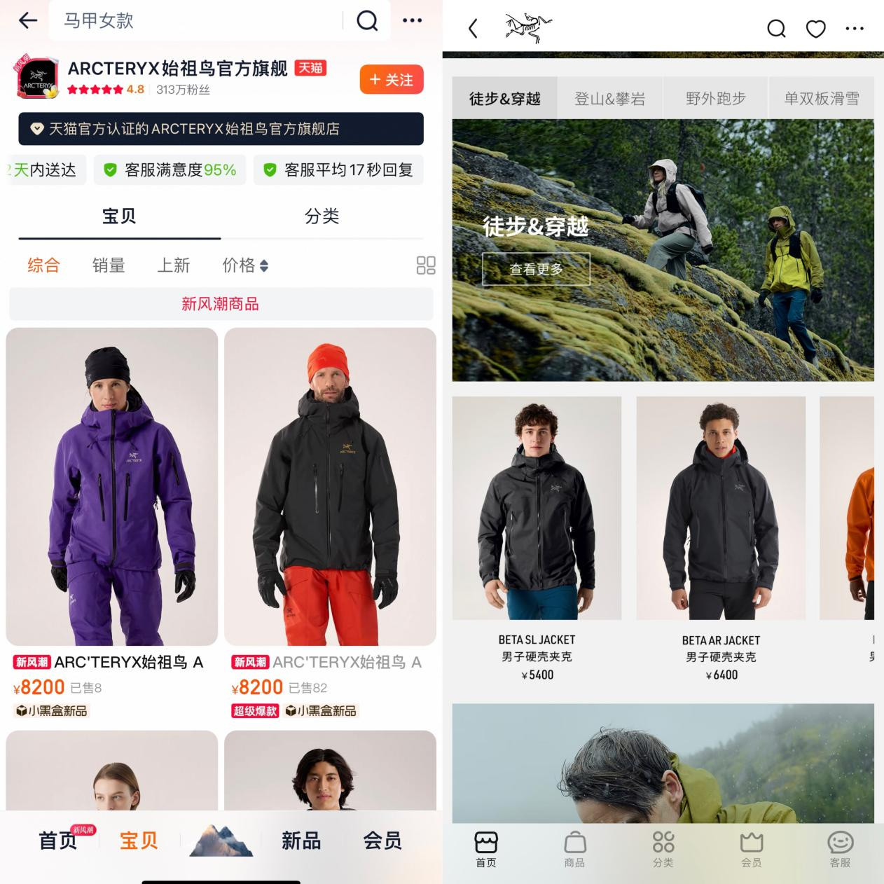 始祖鸟的这场争议,背后折射出整个户外行业对“高海拔营销”的集体迷恋,以及由此陷入的同质化困境。自2019年被安踏收购后,始祖鸟频繁将营销场景锁定在珠峰、雪山等极限环境,试图通过“登顶叙事”强化品牌高端形象。9月23日,其男款硬壳夹克,在天猫、京东官方旗舰店的标价为4500元—8200元。