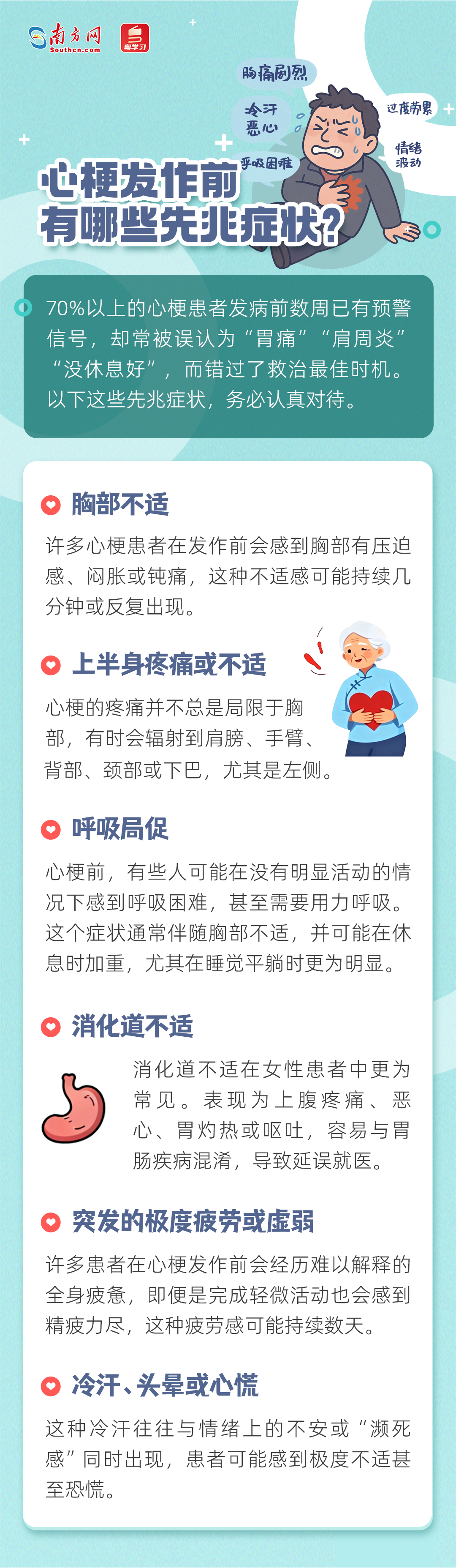 一冷就“要命”!寒潮来袭,急性心梗进入高发季节。心梗并非只威胁老年人,近年来,心梗发病年龄正持续走低,年轻人也需高度警惕。心梗发作前有哪些先兆症状?学会识别身体的求救信号,在关键时刻能挽救生命,一起来看看。