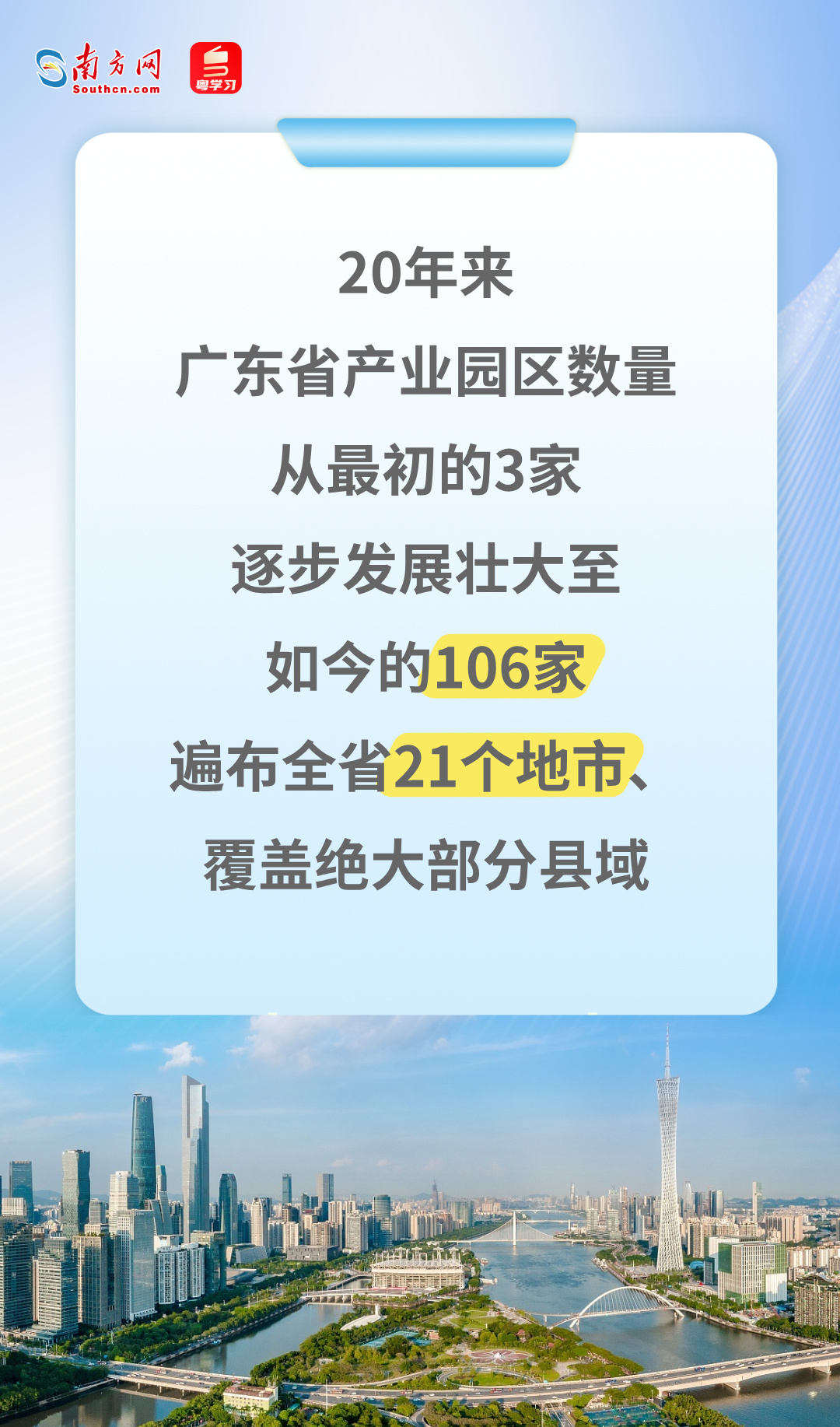 工业园区是工业发展的重要载体,在推进新型工业化、发展新质生产力中发挥重要作用。2005年12月,经省政府批准,在韶关、阳江两市布局首批3个省产业园区,正式启动省产业园区建设。20年来,广东一以贯之推动产业园区建设发展,取得了不俗的成效。10月10日,“全省加快产业园区高质量发展 打造‘百千万工程’产业主引擎”工作推进会举行,透露了省产业园区建设发展20年来的成绩单。