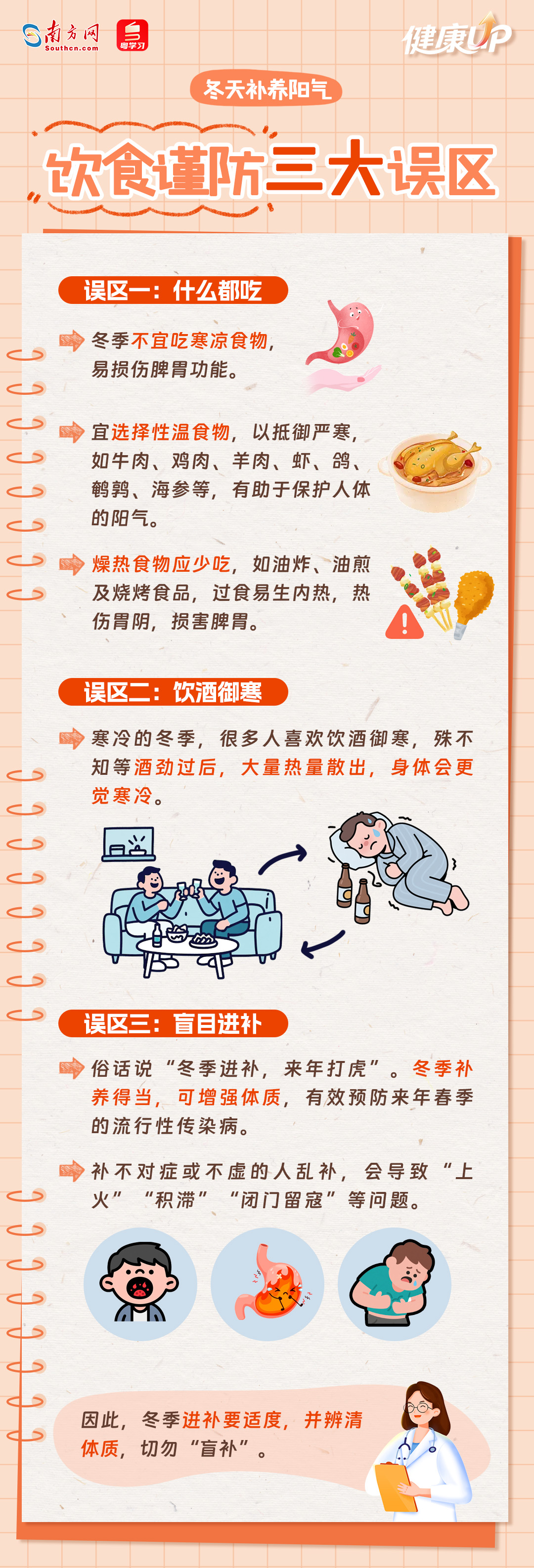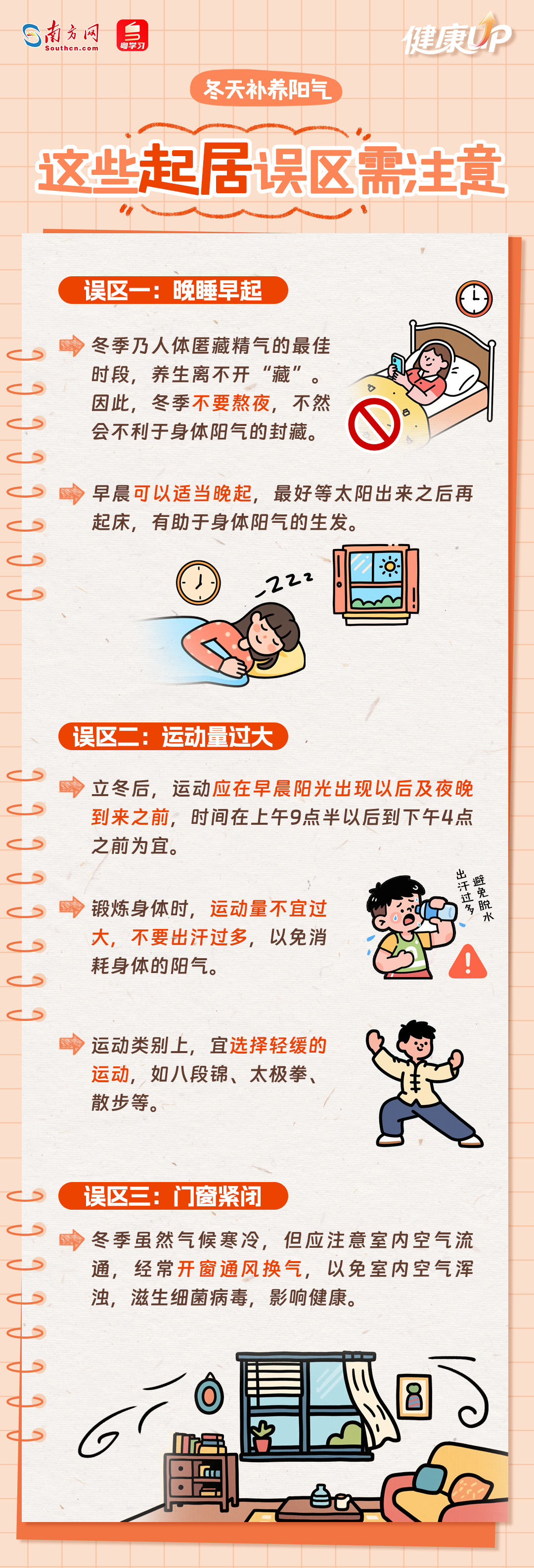 有的人一到冬天就腰酸背痛、胃寒腹泻;有的人则提不起劲,精神萎靡……这些往往是阳气不足的表现。冬季养生要注重养阳、藏阳,为来年的健康打下坚实基础。如何在日常饮食和生活起居方面避免一些误区,以更好地补养阳气呢?一起来看看。