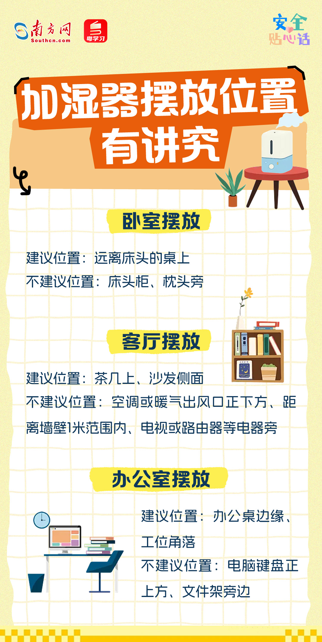 加湿器该怎么选才靠谱?摆在哪里才安全?怎么用才安心?这组安全贴心话快收藏转发,和家人朋友一起正确用加湿器,舒舒服服过秋冬。