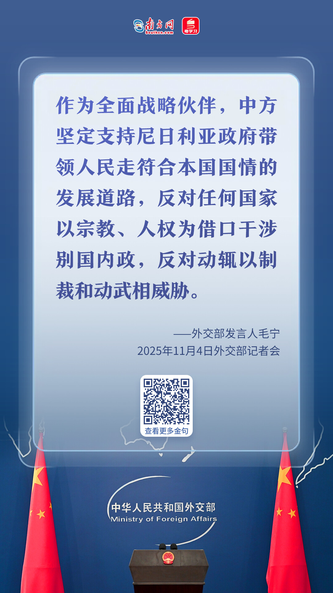 11月4日,外交部发言人毛宁主持例行记者会,就中国同委内瑞拉关系、西撒哈拉形势、美国将尼日利亚列入“特别关注国家”名单等问题回答记者提问(查看实录>>>)。一组图片带你速览今日外交部记者会要点。