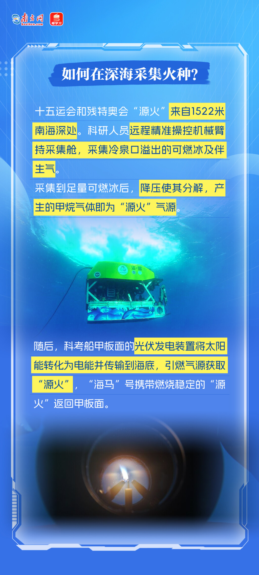 10月9日,距离第十五届全国运动会开幕整整一个月之时,十五运会和残特奥会火种采集仪式在广州南沙举行。此次火种采集包含“源火”采集与“圣火”点燃两个环节。十五运会和残特奥会“源火”,来自1522米南海深处。这次十五运会和残特奥会火种如何采集?动用了哪些大国重器?通过一组海报一起了解!