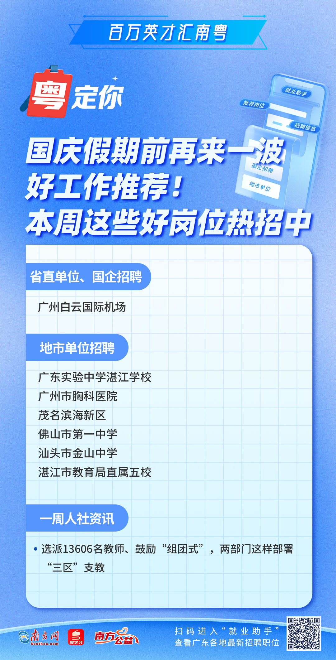 南方网、粤学习客户端本周为你梳理汇总的最新就业资讯来了!