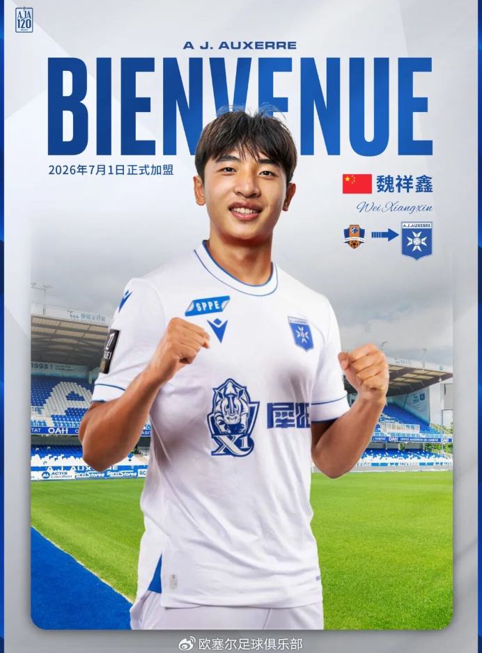北京时间11月23日,法国欧塞尔足球俱乐部官方宣布,已与梅州客家足球俱乐部达成转会协议,梅州足球新星魏祥鑫将在年满18岁后与欧塞尔俱乐部签约,并于2026年7月1日起正式加盟球队。