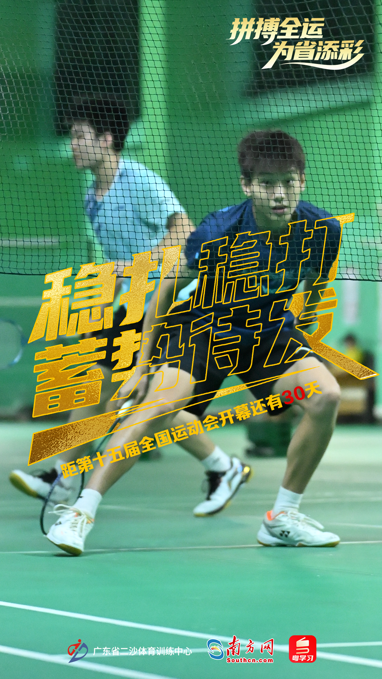 2025年10月10日是第十五届全国运动会开幕倒计时30天,广东省二沙体育训练中心各支运动队正以“拼至无憾”的决心展开最后阶段的冲刺备战。广东健儿摩拳擦掌、蓄势待发,力争在家门口的全运赛场上续写南粤体育的辉煌篇章,为广东增光添彩!