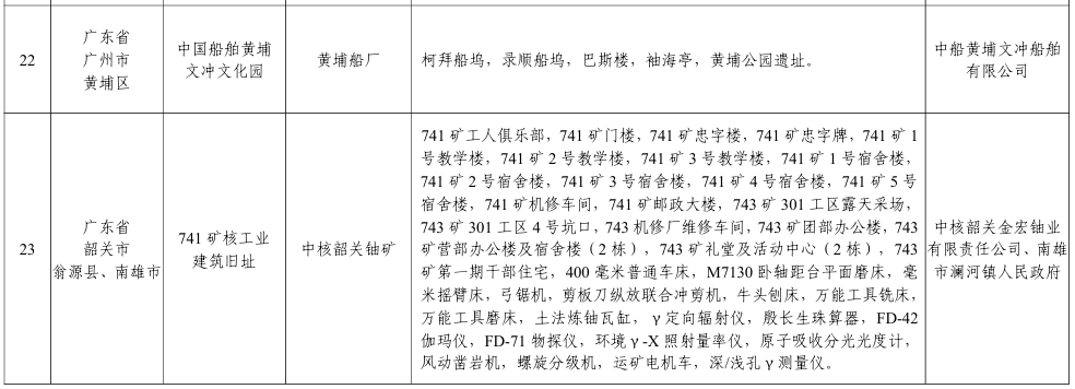 近日,工业和信息化部公布第七批国家工业遗产名单,火箭总装厂、二七机车总组装厂房、京张制造厂、华北制药厂等32项工业遗产入选。其中,广东有2项工业遗产入选,分别是黄埔船厂和中核韶关铀矿。