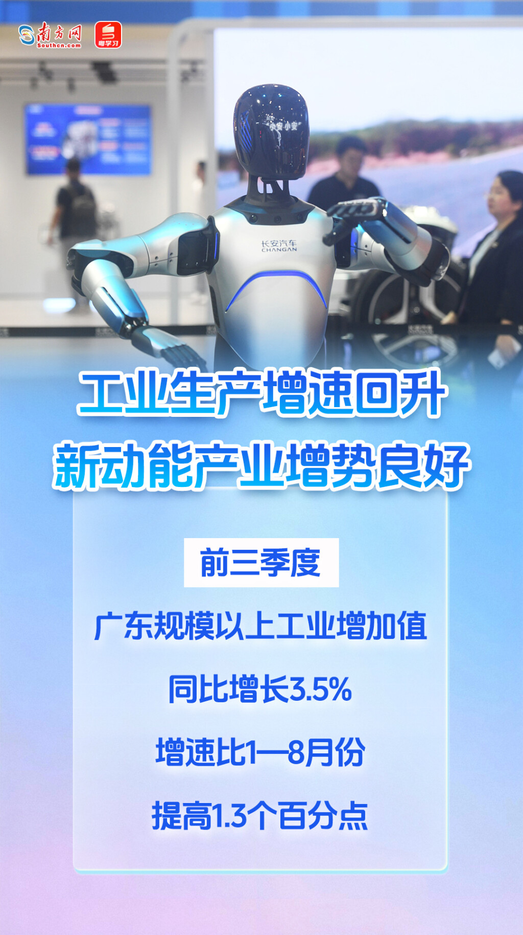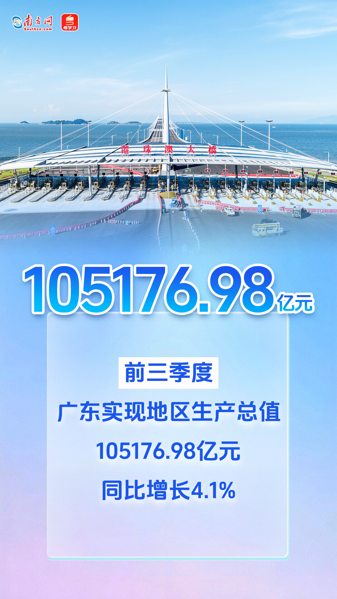 10月24日,广东省统计局发布前三季度广东经济运行简况。数据显示,前三季度广东经济运行总体保持稳定,实现地区生产总值105176.98亿元,其中,新质生产力动能增势亮眼!同时,三大产业保持稳定增势。具体情况如何?让我们通过一组海报了解→