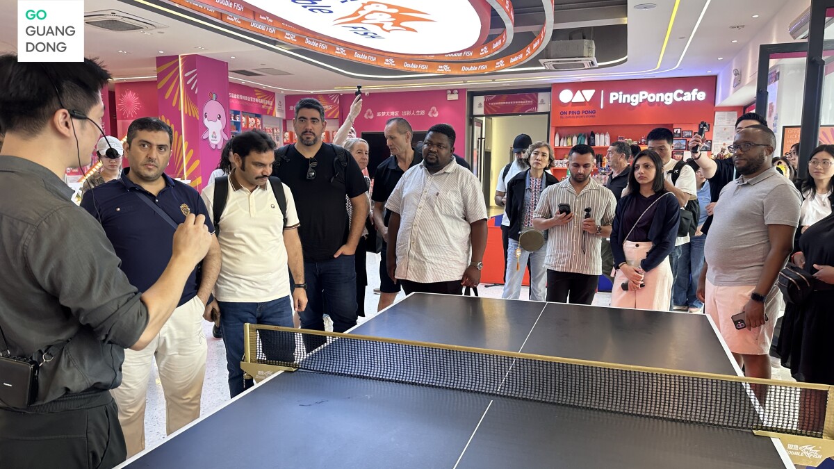 10月30日,GO Guangdong国际参访服务平台首次与广交会携手,共同推出“广交会×十五运会”采购商参访之旅活动,吸引来自新西兰、津巴布韦、印度、英国、黎巴嫩、巴西、阿尔及利亚等12个国家的25名广交会采购商踊跃参与。从体育场馆灯光音效的沉浸体验,到双鱼公司里乒乓球的试打互动,采购商们在多元场景中实地感受广东体育产业的蓬勃活力,纷纷主动向企业索要产品手册与联系方式,展现出浓厚的合作意愿。