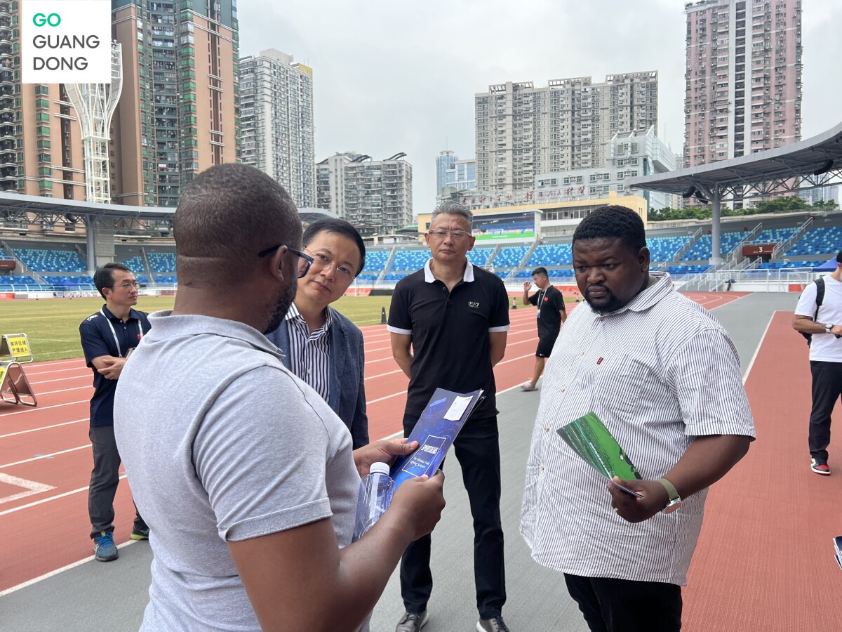 “大家可以试跑一下,亲身感受跑道的质感。”“场光照明系统升级后,以更低的成本实现了更优的效果。”“请大家仔细观察,更新这个场馆的音响系统,最大的挑战是什么?”……30日下午,参访团来到位于广州老城区的广东省人民体育场,在喜迎“十五运会”的浓厚氛围中,体验这座老场馆经过改造后焕发的新魅力。参与场馆焕新工程的中国供应商代表以流利的英文,为他们逐一讲解场馆中蕴含的“黑科技”。