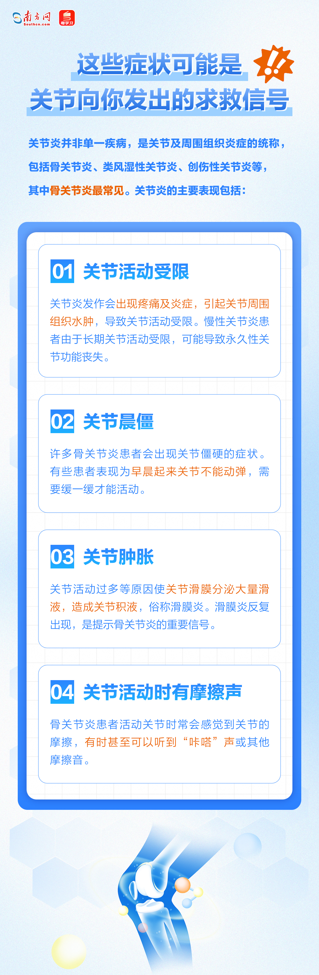 面对关节炎,我们有哪些必须注意的事项?又该如何科学预防?今天(10月12日)是第29个世界关节炎日,一起守护关节健康!