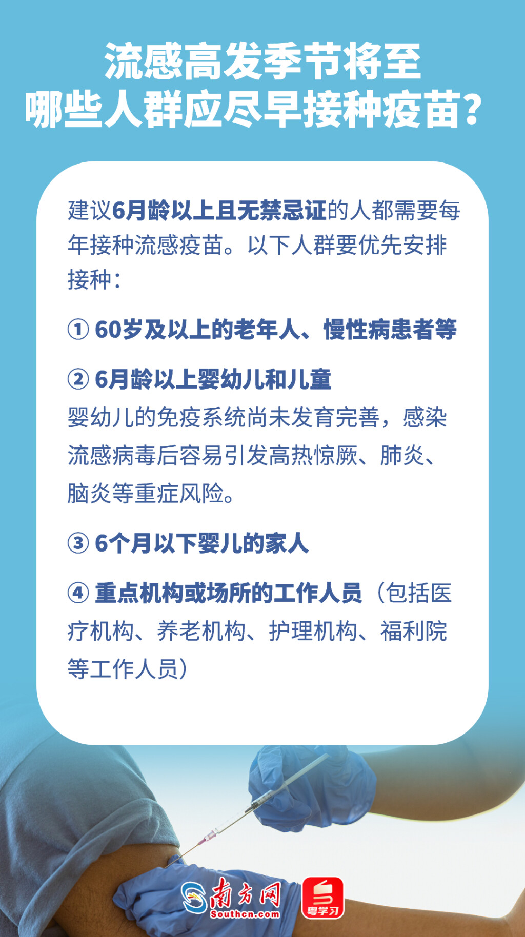 10月9日,国家卫生健康委举行新闻发布会,专家介绍,当下气温明显下降,流感高发季节即将来临。我国结合全国流感监测数据,参考世卫组织发布的流感疫苗株推荐意见,调整当季流感疫苗的组分,让疫苗能与流行株抗原性尽可能匹配,建议大家尽早接种流感疫苗。接种流感疫苗以后,体内产生的抗体水平也会随着时间慢慢下降,因此需要每年都接种,才能获得更好的防护效果。