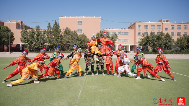 华南师范大学支教老师王继华负责教授这门被称为“中华战舞”的非遗项目。“新疆孩子身高体健,身体素质跳英歌舞非常有优势。”他介绍。