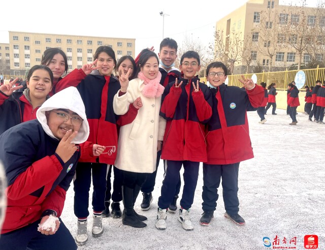 那场初雪发生在2024年12月12日。疏附县本就开阔,雪落下来,更显辽远。姚春霞看着校园里枯枝上那一层薄薄的雪,作为南方人的她,既兴奋,也感受到某种原始的诗意。几个学生跑来办公室,大声告诉她,“老师下雪了!”姚春霞也索性不再多想,和学生们一起在操场上玩起了雪,每个人的脸和手都冻得有点红,但每个人都在笑。